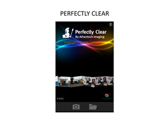 O documento discute princípios de design de interação aplicados no software Perfect Clear para Android, abordando elementos como visibilidade, feedback e consistência. O autor, Pedro Marcel, analisa mudanças nas cores dos botões, imagens com affordance e o funcionamento das funções adicionais. O trabalho faz parte de um curso de Sistemas de Informação na Universidade Centro Universitário Luterano de Santarém.