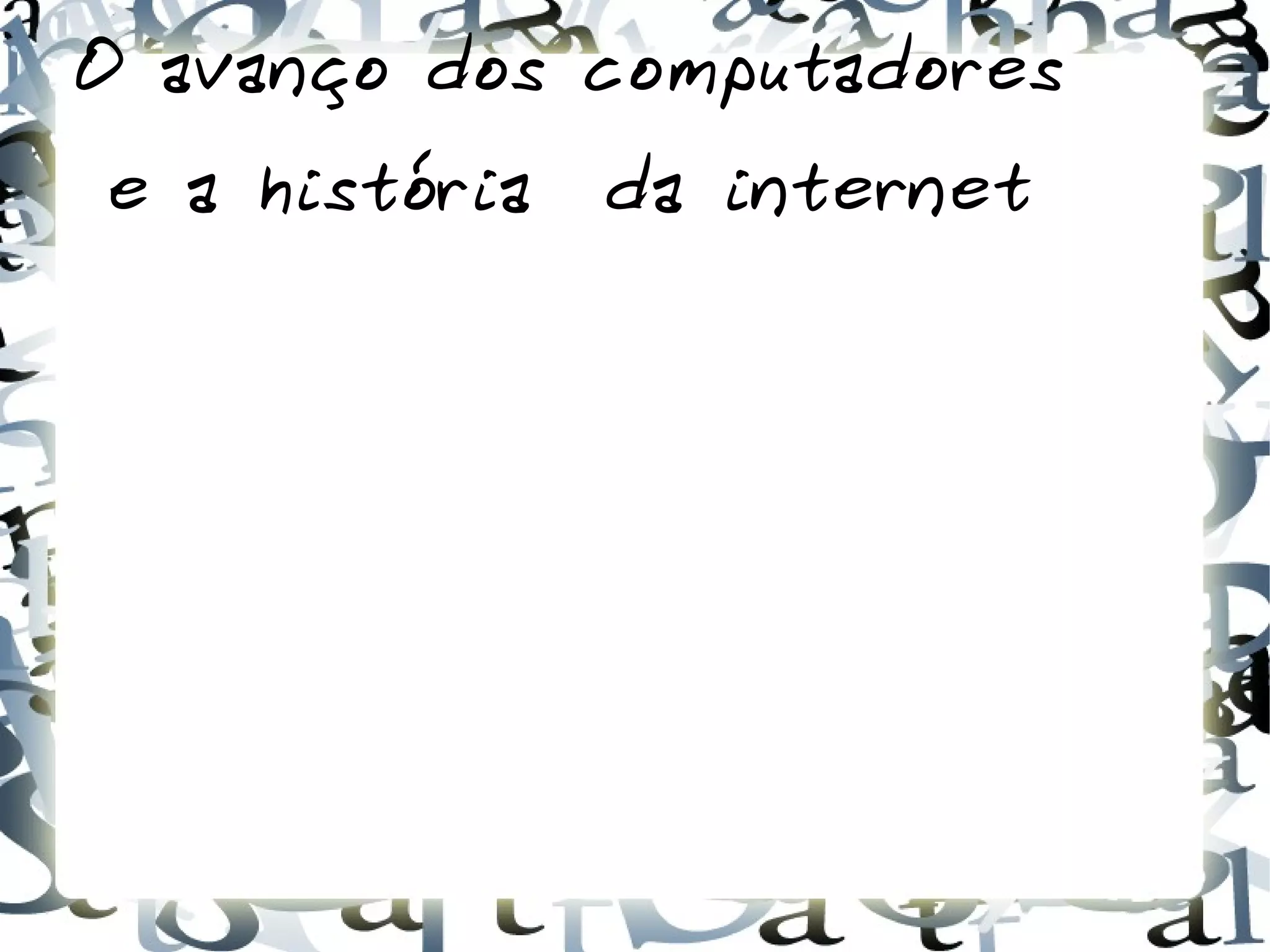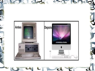 O documento descreve a evolução dos computadores e da internet, desde os primeiros transistores até os notebooks modernos e o crescimento da internet, que começou com o envio do primeiro email em 1969 e hoje tem bilhões de usuários em todo o mundo.
