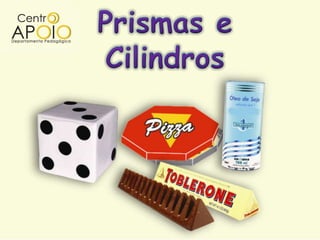 O documento aborda conceitos de geometria plana, incluindo áreas de diversas figuras como retângulos, quadrados, triângulos e hexágonos, além de prismas e cilindros. Ele descreve a definição, elementos e fórmulas para o cálculo de área e volume desses sólidos, detalhando exemplos práticos. Também menciona conversões de unidades de medida e teoremas relacionados a dimensões em geometria.