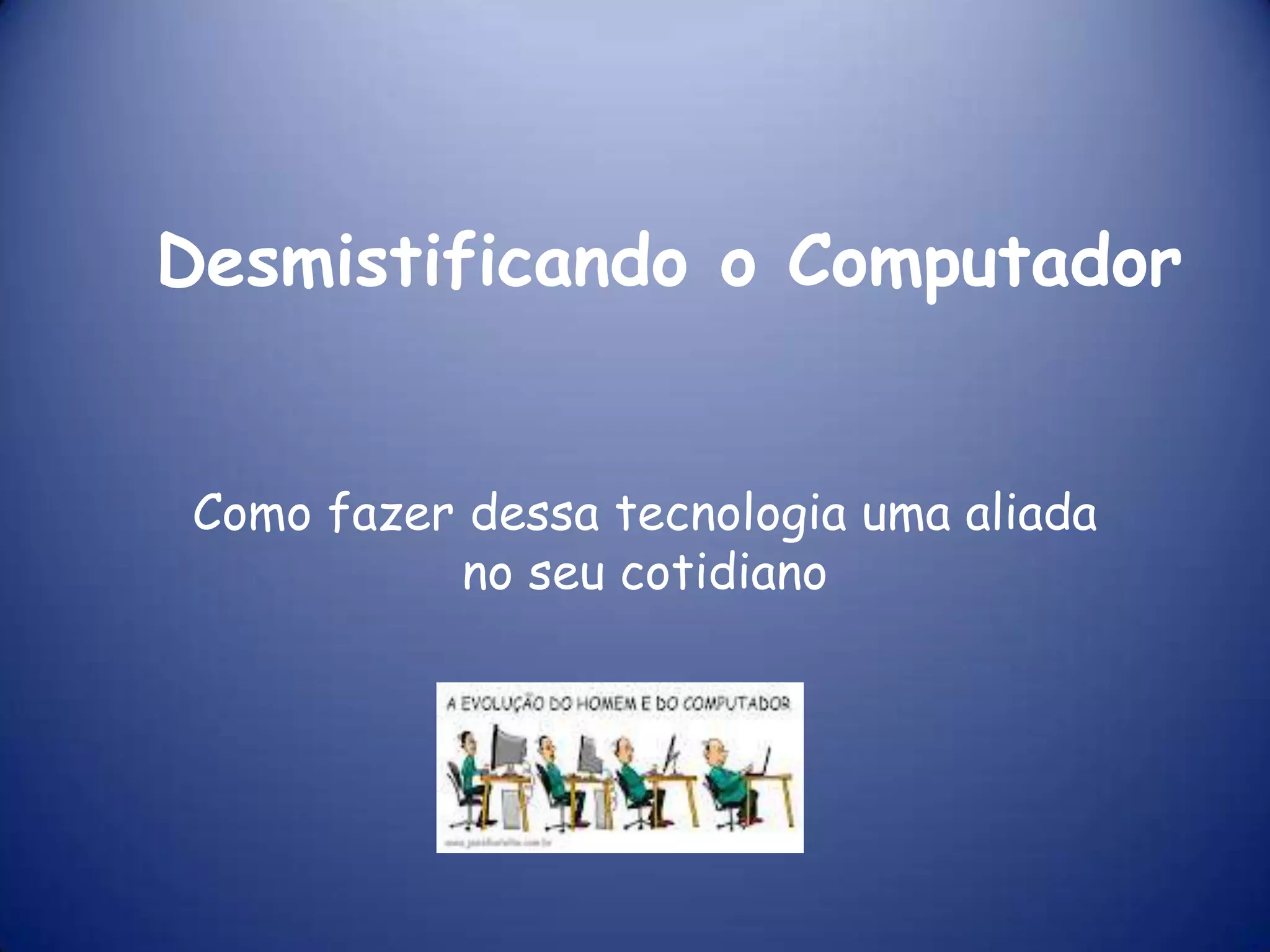 O documento discute como os computadores podem ser usados para melhorar a educação através da curiosidade, troca de ideias e cooperação, sem hierarquias rígidas. Também aborda que os professores devem incorporar as ferramentas digitais sem medo de errar e que os computadores podem ser usados de forma criativa em sala de aula.