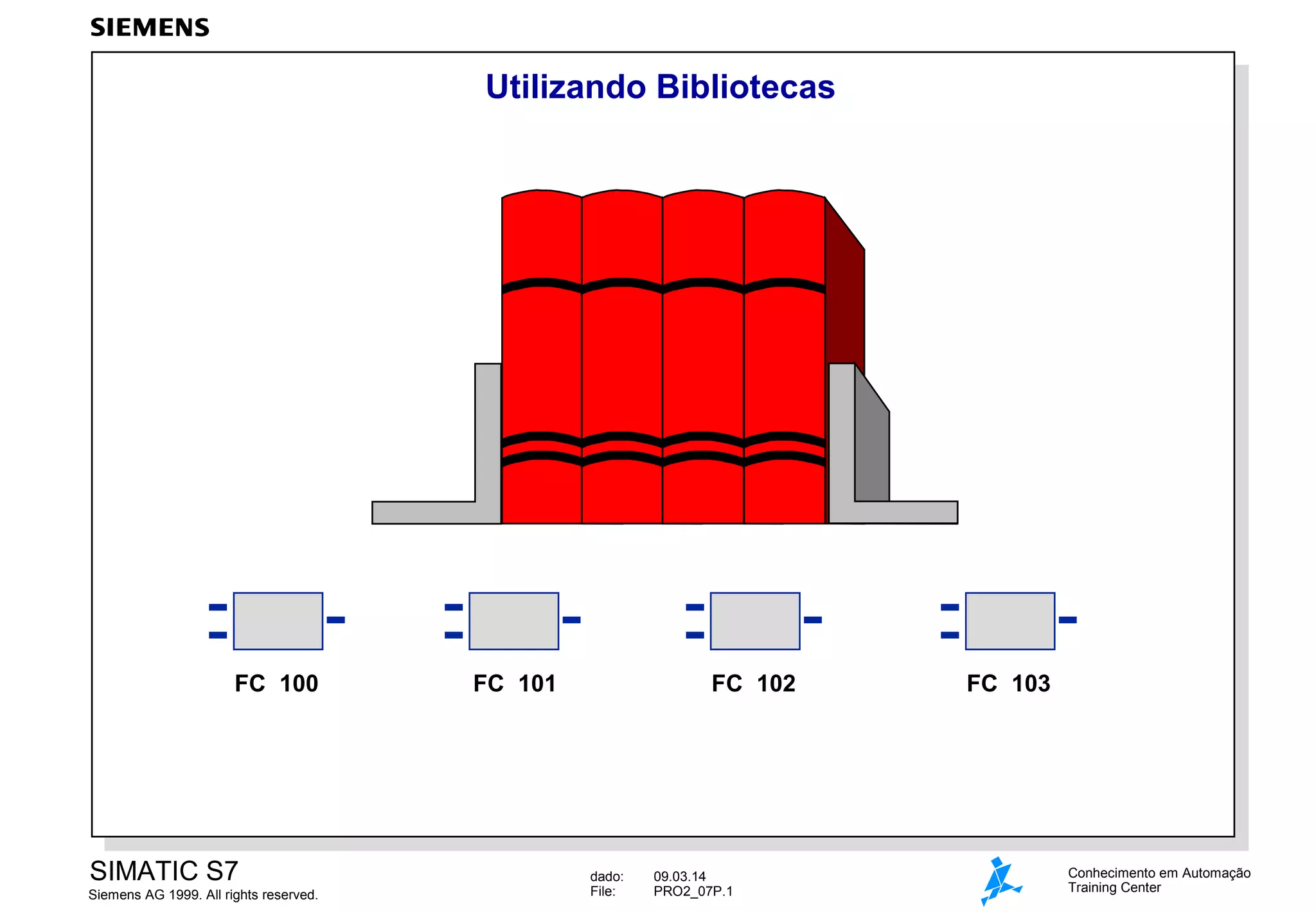 Utilizando bibliotecas permite armazenar componentes de programa reutilizáveis que podem ser copiados entre bibliotecas e projetos, mas não diretamente para a CPU. As bibliotecas contêm pastas de programa com blocos, arquivos de fonte e símbolos, além de gráficos para S7-CFC. Funções do sistema como SFCs e SFBs são armazenadas no sistema operacional das CPUs e fornecem funcionalidades como controle de programa, comunicação, diagnóstico e outras.