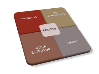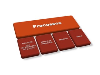 O documento apresenta os serviços de um escritório de arquitetura, incluindo projetos para condomínios, indústrias, hospitais, hotéis e outros tipos de construção. O escritório oferece projetos arquitetônicos, cálculos estruturais, execução de obras e sistemas de automação, cobrindo todas as etapas de um empreendimento.