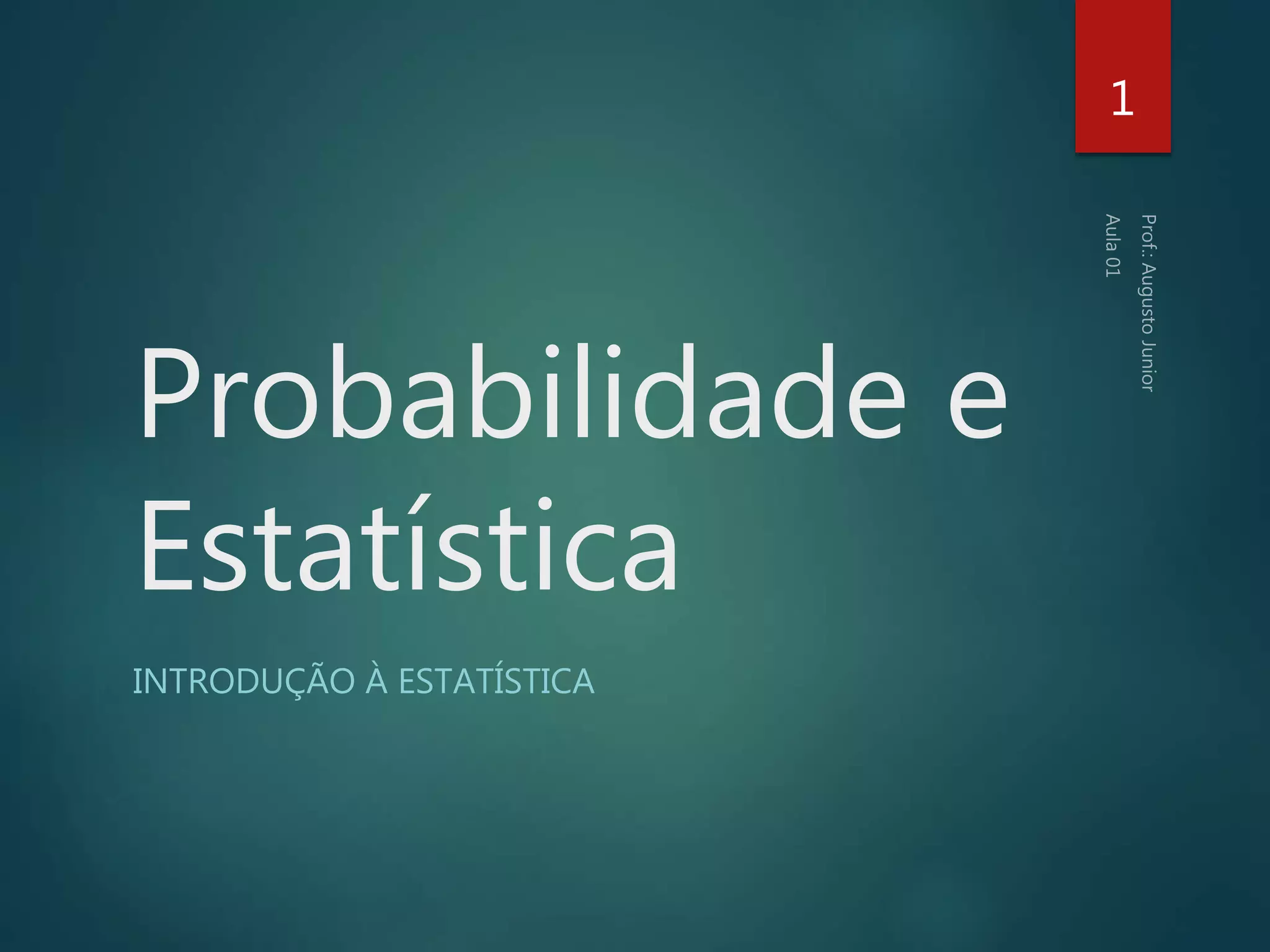 O documento fornece uma introdução à estatística, abordando seus objetivos, uma breve história da estatística, as principais classificações da estatística (descritiva, probabilidades e inferencial), conceitos importantes como população e amostra, tipos de variáveis, organização e contagem de dados, e exercícios de fixação.