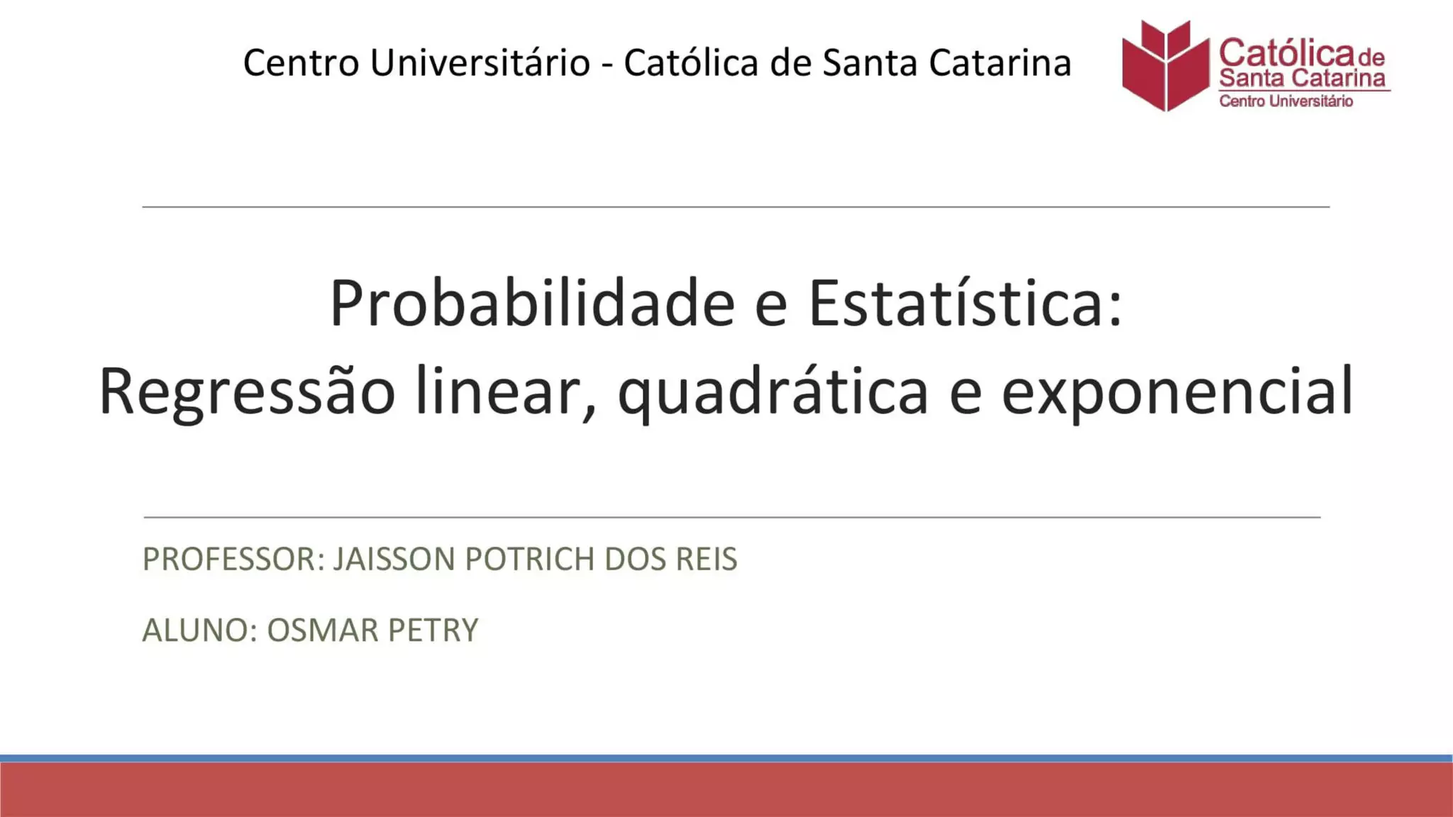 Apresentação feita em matéria dirigida de probabilidade e estatística no curso de Sistemas de Informação para o professor Jaisson dos Reis na Católica Jaraguá do Sul