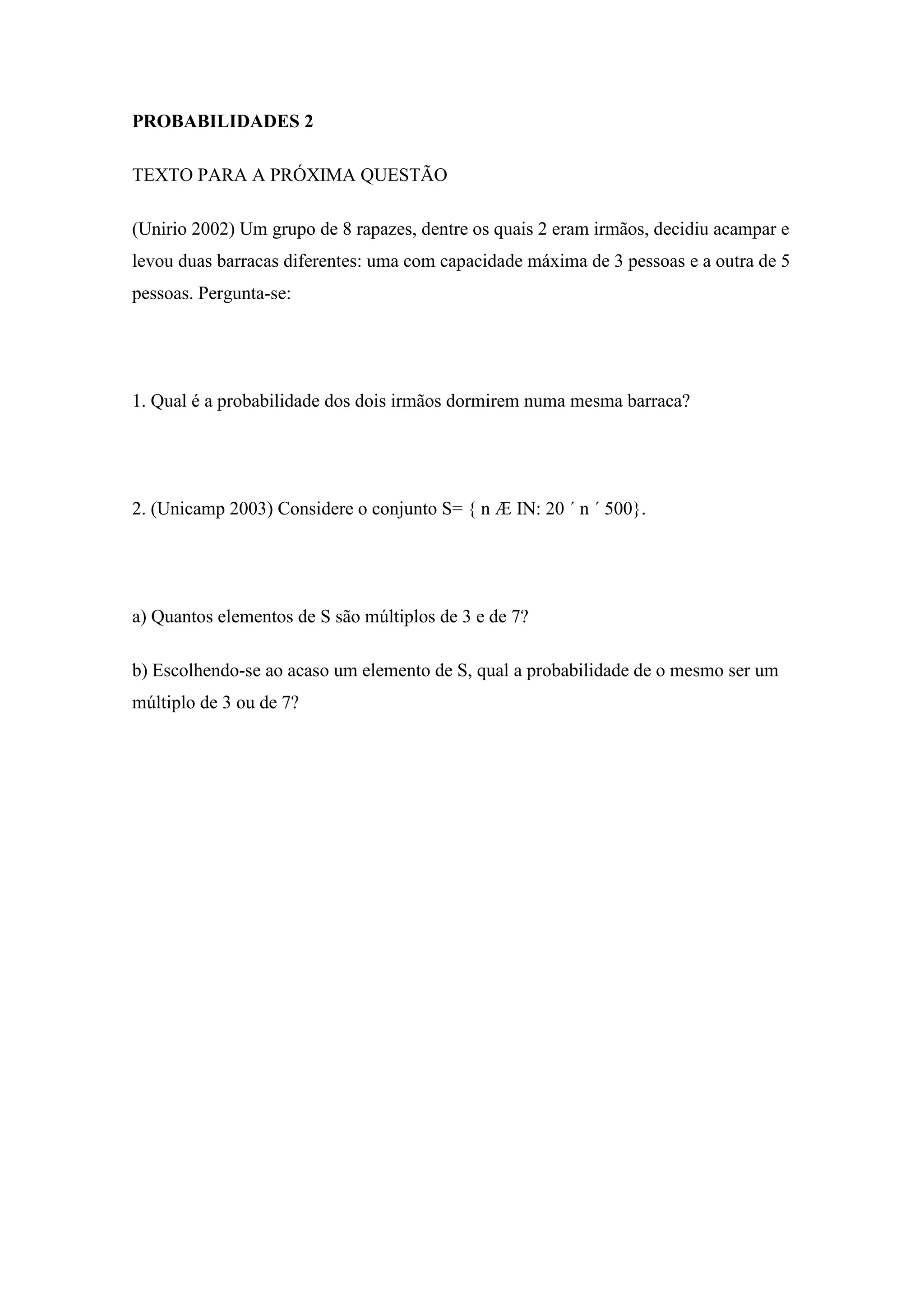 Este documento contém 31 problemas de probabilidade e estatística, abrangendo tópicos como probabilidade de eventos, distribuição de probabilidade, probabilidade condicional e independência. Os problemas envolvem cálculos e interpretação de probabilidades em diversos contextos como jogos, sorteios, pesquisas e experimentos aleatórios.
