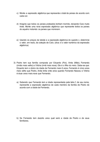 Caio tem um aquário com 4 peixes azuis a R$1,20 cada, 6 brancos a R$1,00 cada, 2 dourados a R$2,30 cada, 7 prateados a R