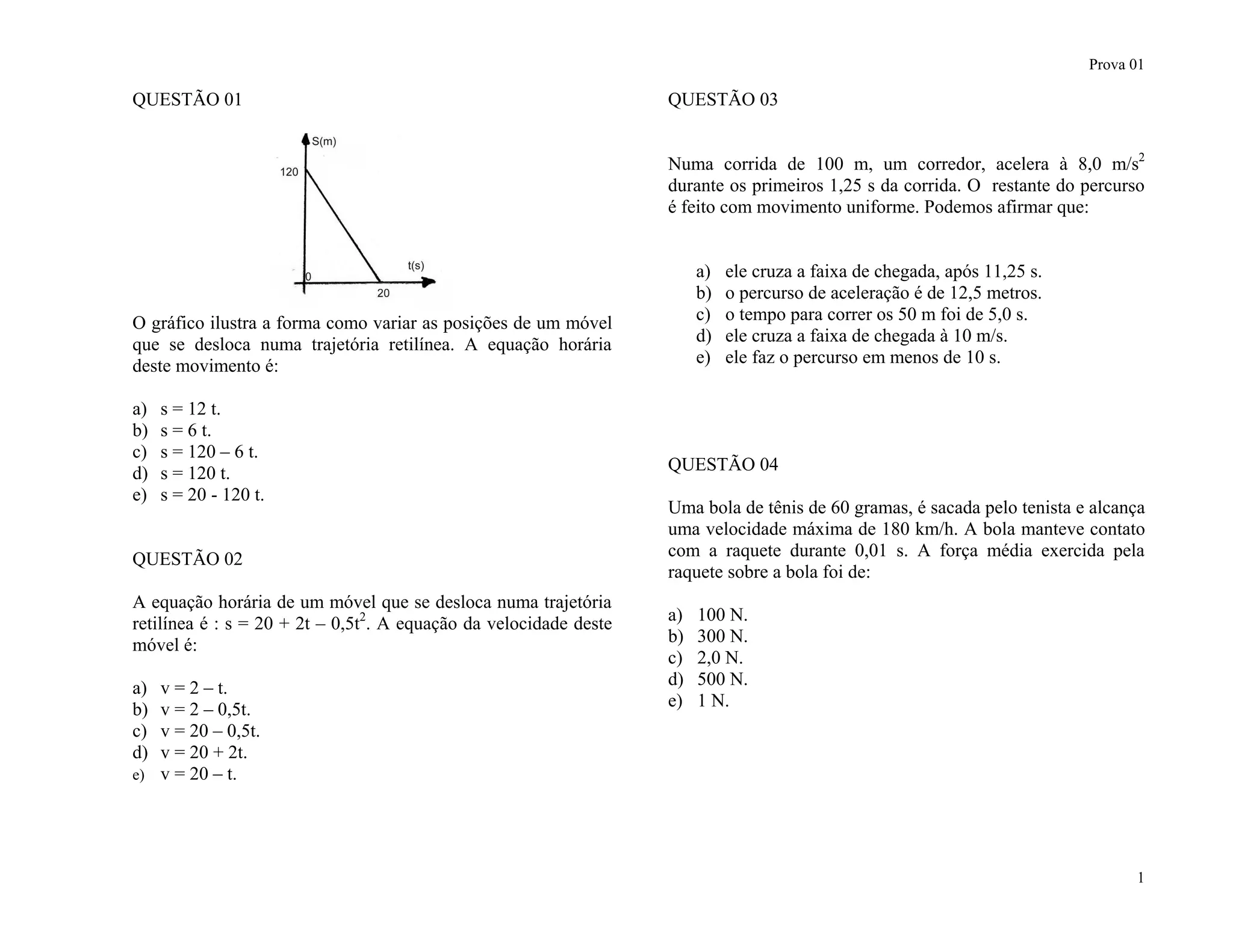 O documento contém 24 questões sobre conceitos de mecânica newtoniana e calor. As questões abordam tópicos como movimento retilíneo uniforme e variado, trabalho, energia potencial elástica, pressão, mudança de estado da matéria, transferência de calor e propagação do som.