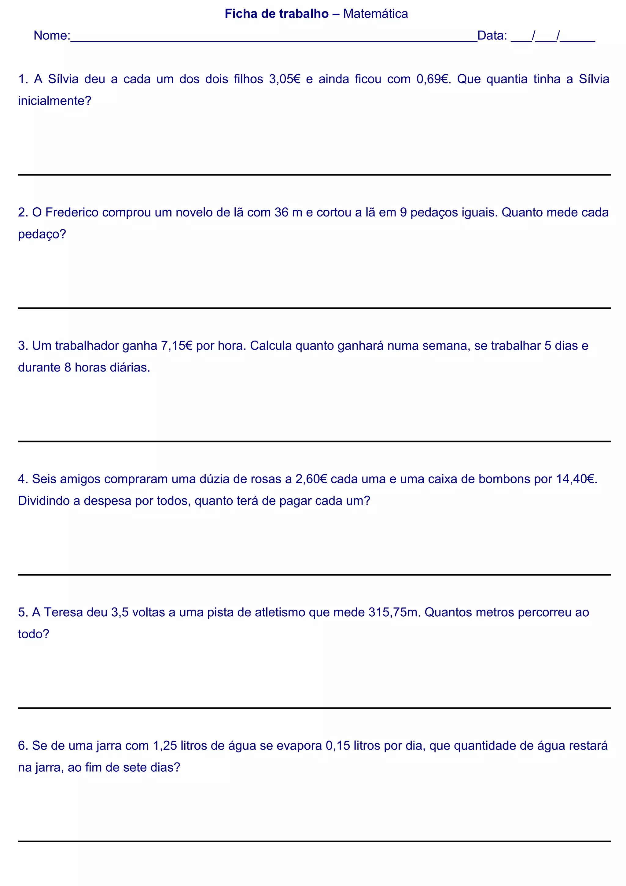 4. Seis amigos compraram uma dúzia de rosas a 2,60€ cada uma e uma caixa de bombons por 14,40€.