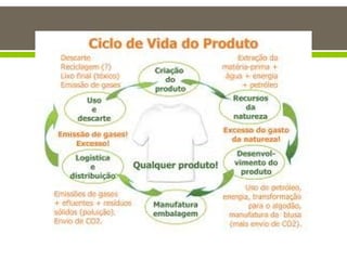 O documento discute estratégias para produção mais sustentável, incluindo: 1) produção mais limpa que integra objetivos ambientais aos processos de produção; 2) ecodesign para reduzir impactos em todo o ciclo de vida do produto; 3) gestão de produção focada em eficiência e tecnologias limpas.