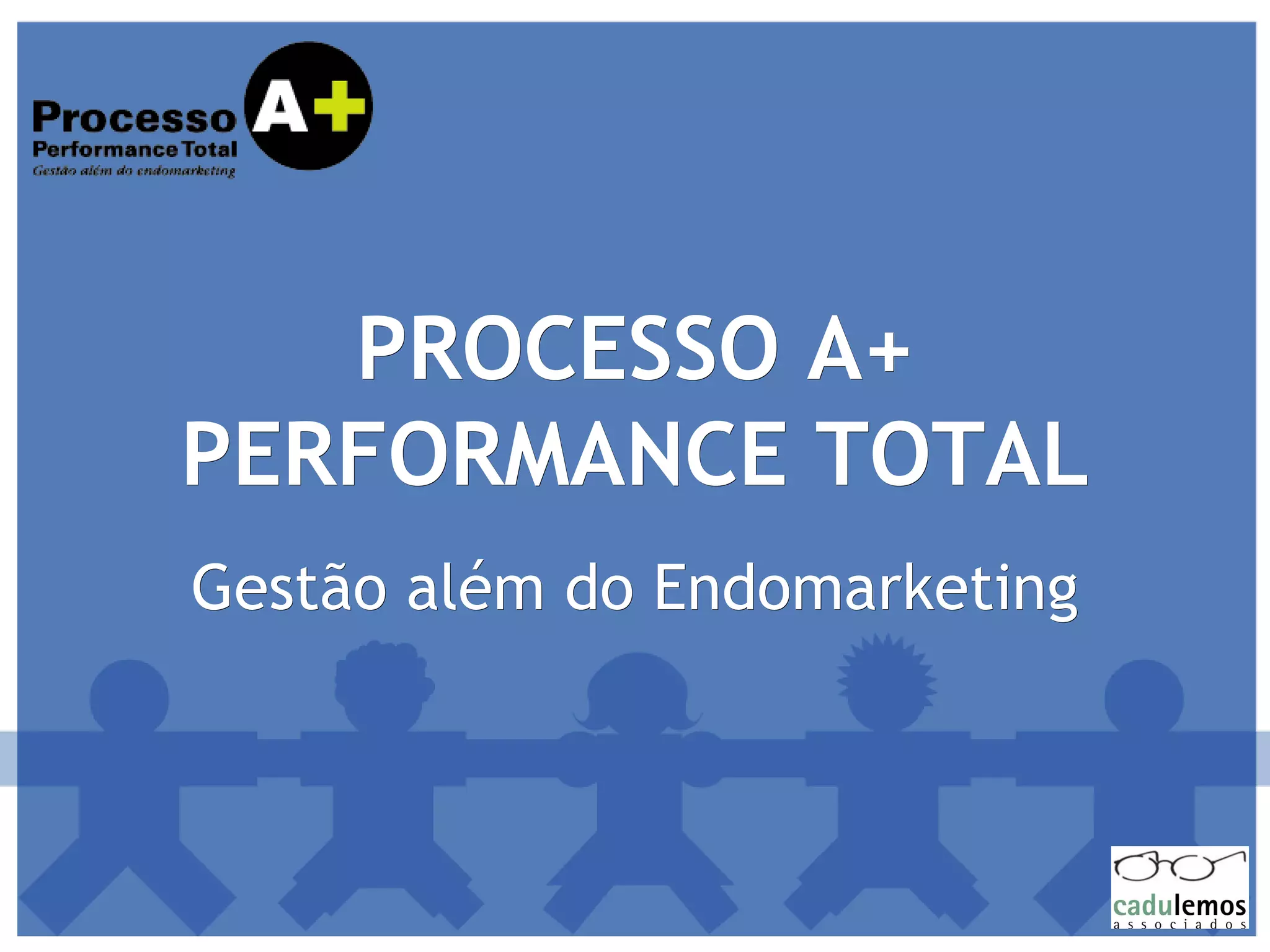 O documento discute como o Processo A+ auxilia empresas a potencializar as Relações Humanas e a Performance Total através de 5 fases: 1) Diagnóstico das necessidades da empresa; 2) Comunicação Interna para integrar funcionários; 3) Gestão do Conhecimento para mudar atitudes; 4) Métricas para medir resultados; 5) Reconhecimento dos funcionários. O Processo A+ valoriza a diversidade e vê as pessoas como diferencial competitivo.