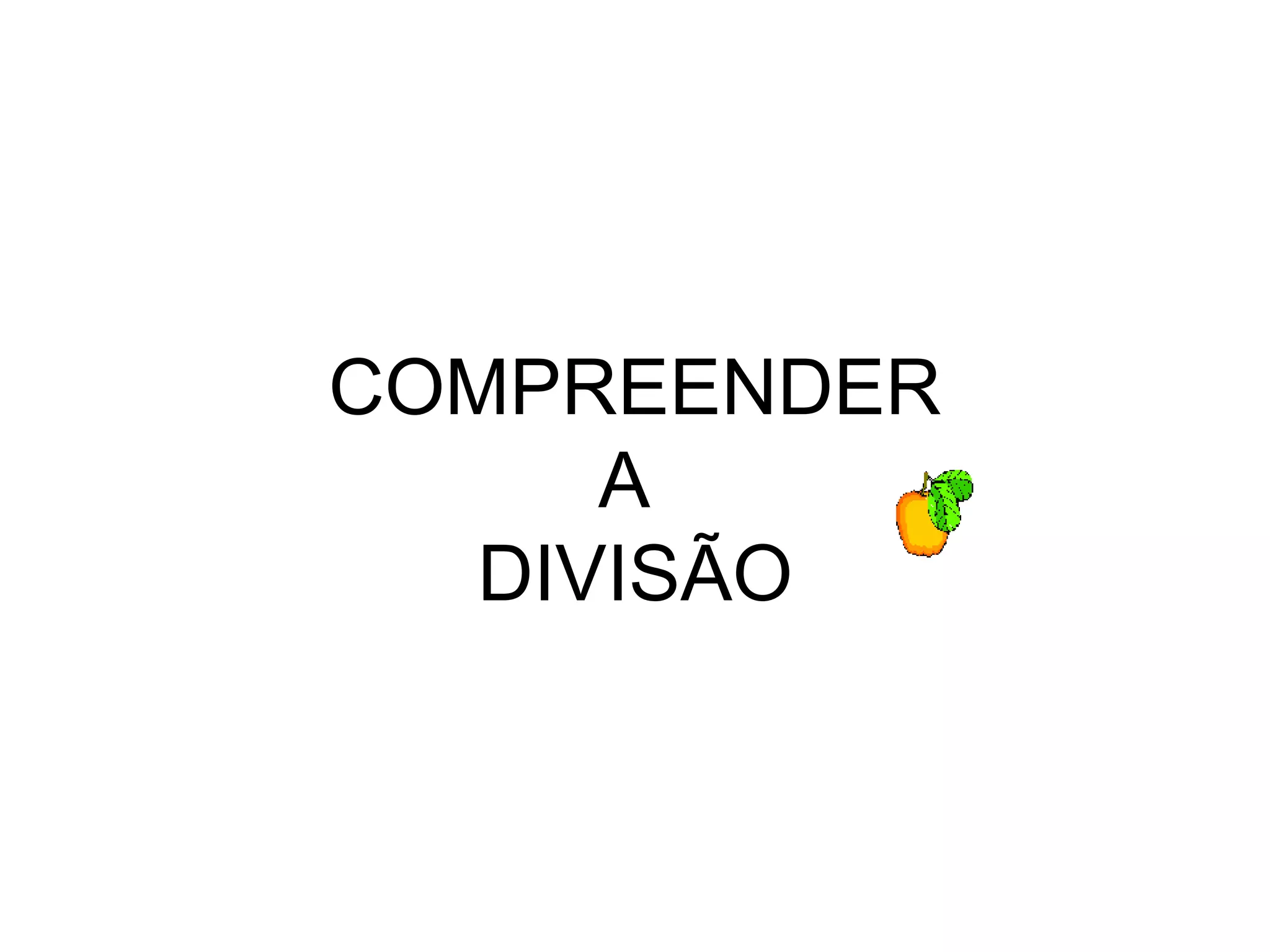 Este documento explica o conceito de divisão matemática. A divisão permite dividir um conjunto de elementos em partes iguais. Exemplifica dividindo 18 maçãs inicialmente uma a uma, depois duas a duas e três a três, mostrando que dividir seis a seis é mais rápido. Explica também como dividir 44 frutos em 3 caixas, primeiro dividindo as dezenas e depois as unidades restantes.