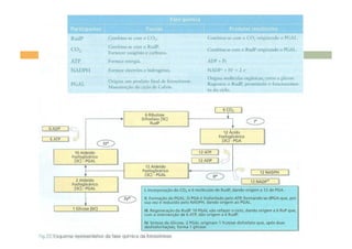 carbono que é reduzido e fosforilado, formando-se compostos orgânicos.