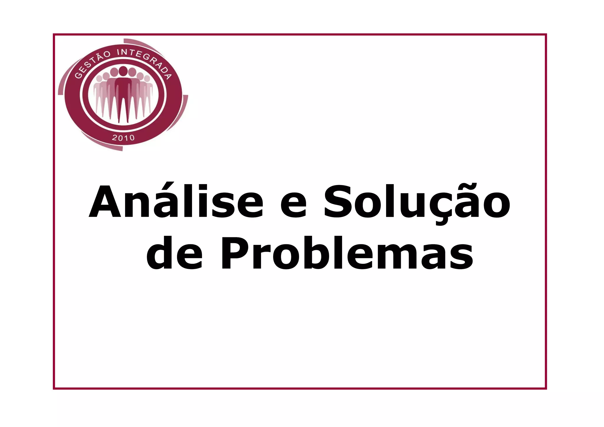 O documento fornece instruções sobre análise e solução de problemas. Discute métodos como diagrama de causa e efeito, brainstorming e análise de situações para identificar causas raízes de problemas e implementar ações corretivas de forma efetiva.