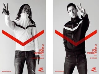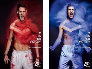 O documento discute a importância da identidade visual, que combina nome, marca e elementos gráficos para representar uma empresa e seus valores. Destaca exemplos de campanhas publicitárias da adidas e da nike, enfatizando a necessidade de originalidade e reconhecimento imediato nas comunicações visuais. A eficácia da identidade visual é crucial para a identificação da marca e a conexão com o público-alvo.