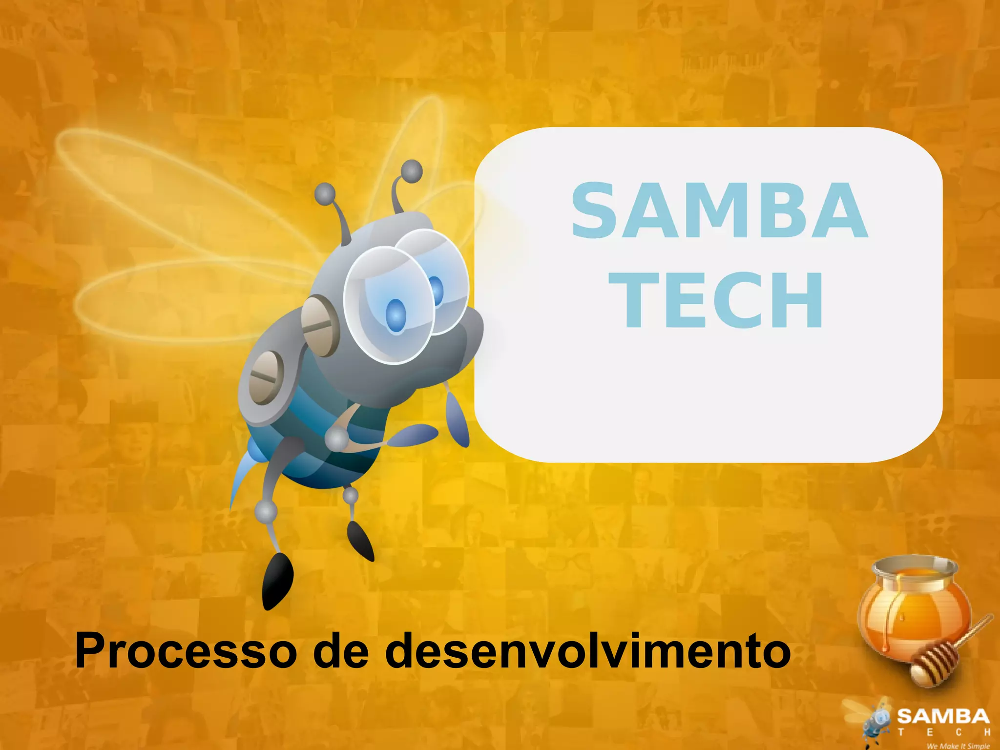 O documento descreve o processo de desenvolvimento usando Git, GitHub, Jenkins e BluePill na Samba Tech, incluindo o uso de feature branches, pull requests e hot fixes. É explicado como criar e alternar entre branches, fazer commit e push das modificações, realizar merge e rebase, testar features, criar release notes e colocar código em produção. Também são respondidas perguntas frequentes sobre como ir para revisões específicas e duas pessoas trabalharem em uma feature de forma independente.