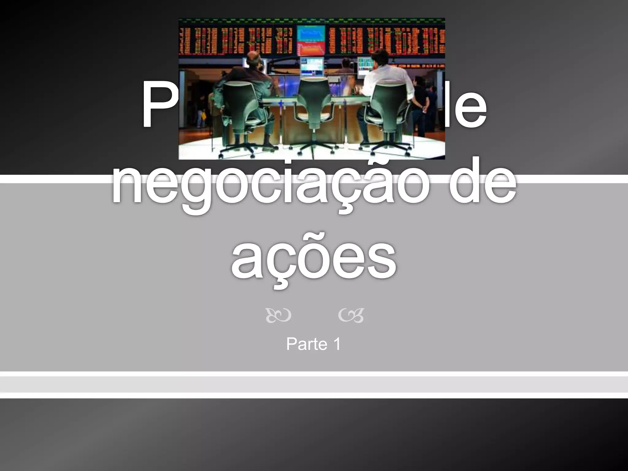 O documento descreve os conceitos básicos sobre ações e mercado de capitais, incluindo: 1) definição de ações; 2) como funciona a compra e venda de ações em bolsa; 3) os tipos de ordens de compra e venda.