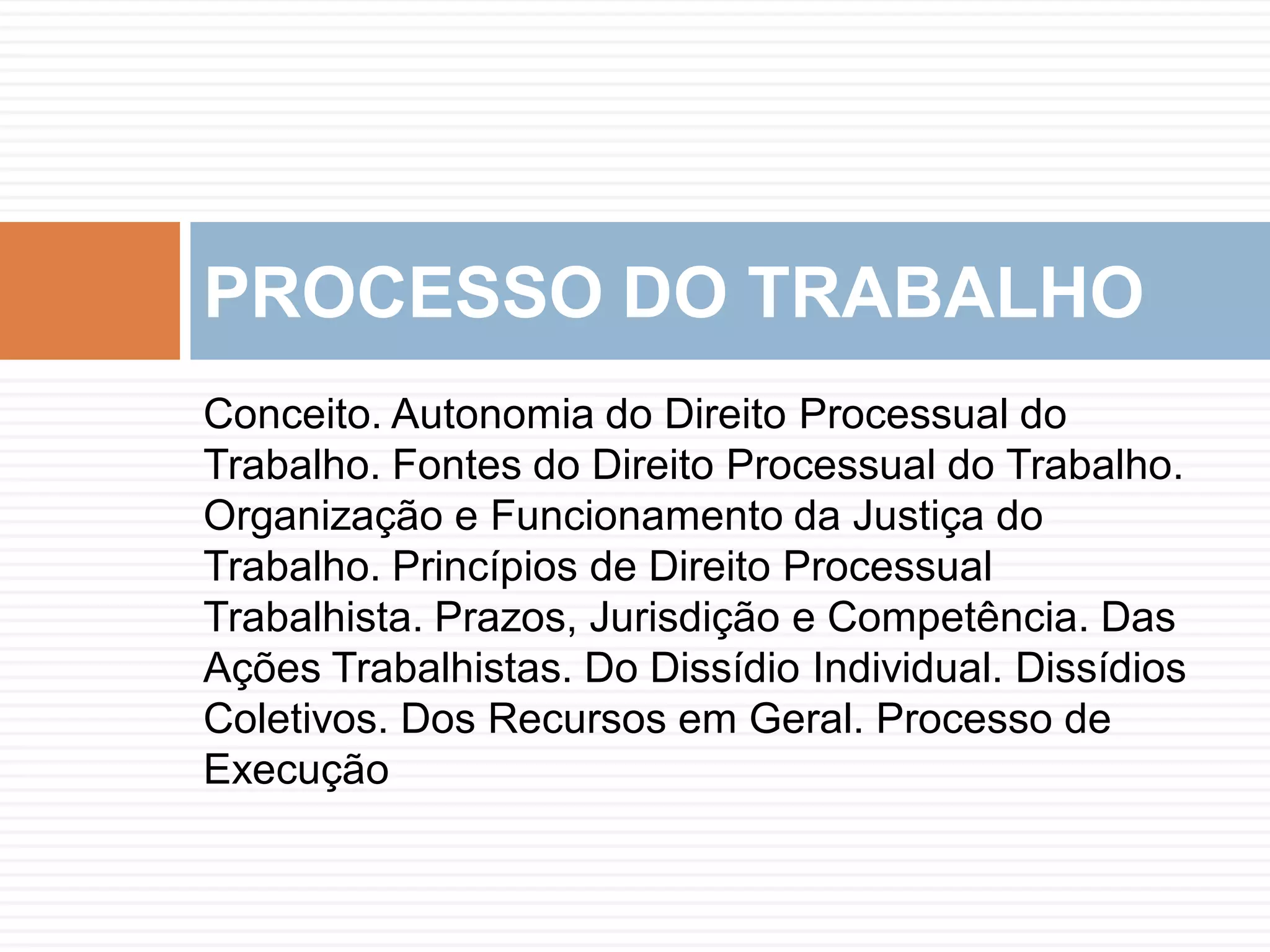 O documento descreve a evolução histórica e os principais aspectos do processo do trabalho no Brasil e em outros países. Aborda os fundamentos históricos da justiça do trabalho, como os conflitos na revolução industrial, e traça a evolução dos sistemas de justiça do trabalho na França, Alemanha, Itália, México, Espanha, Grã-Bretanha e Estados Unidos. Também resume a evolução no Brasil, com a criação dos Conselhos Permanentes de Conciliação e Arbitragem em 1907.