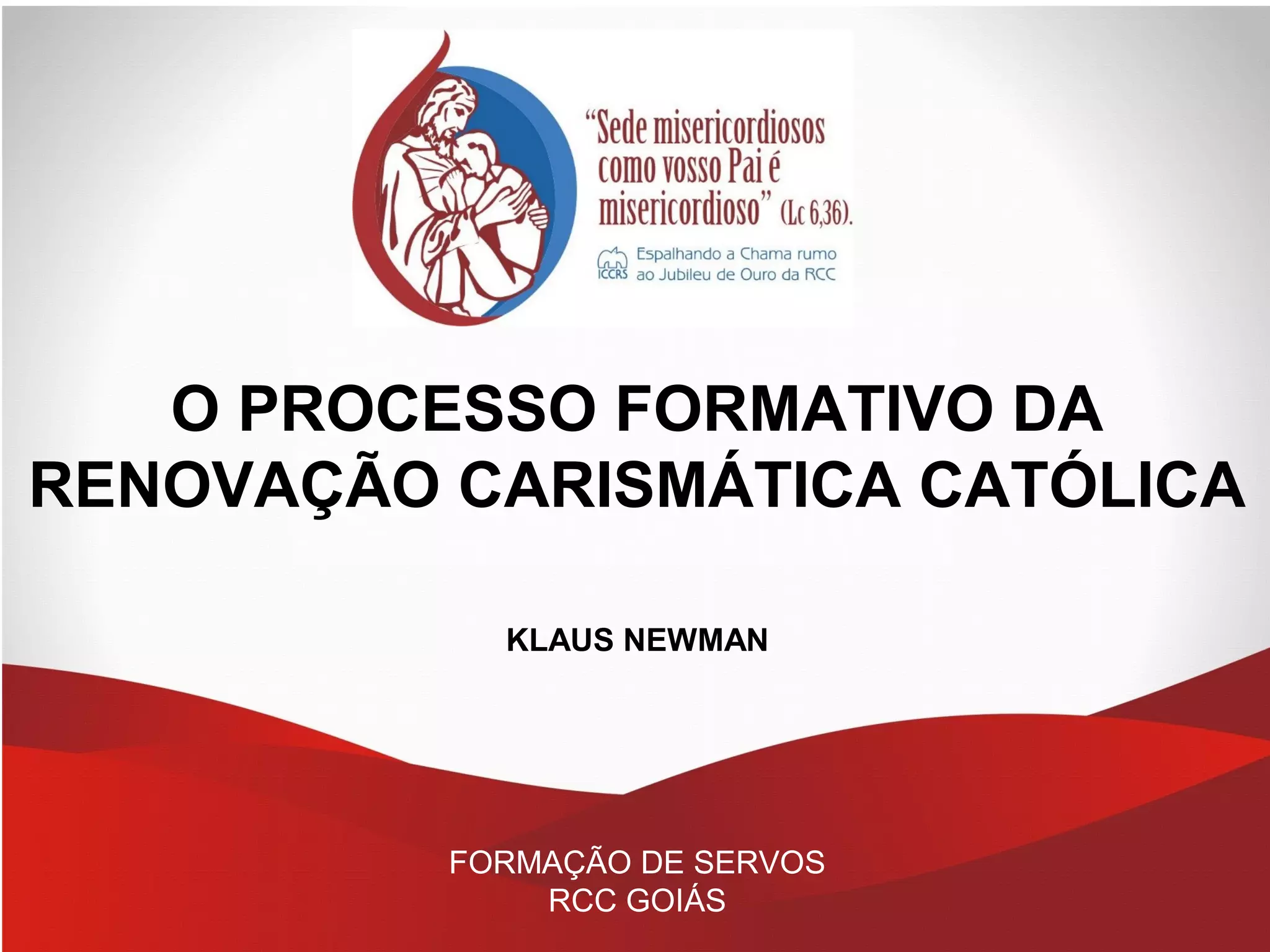 O documento descreve o processo formativo da Renovação Carismática Católica em Goiás, incluindo a fase querigmática, o módulo básico, a formação específica e grupos de perseverança. O objetivo é proporcionar um encontro com Jesus Cristo e conhecimento sobre o movimento e a Igreja por meio de momentos de oração, seminários e formações carismáticas.