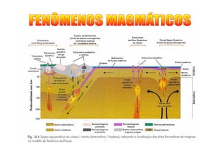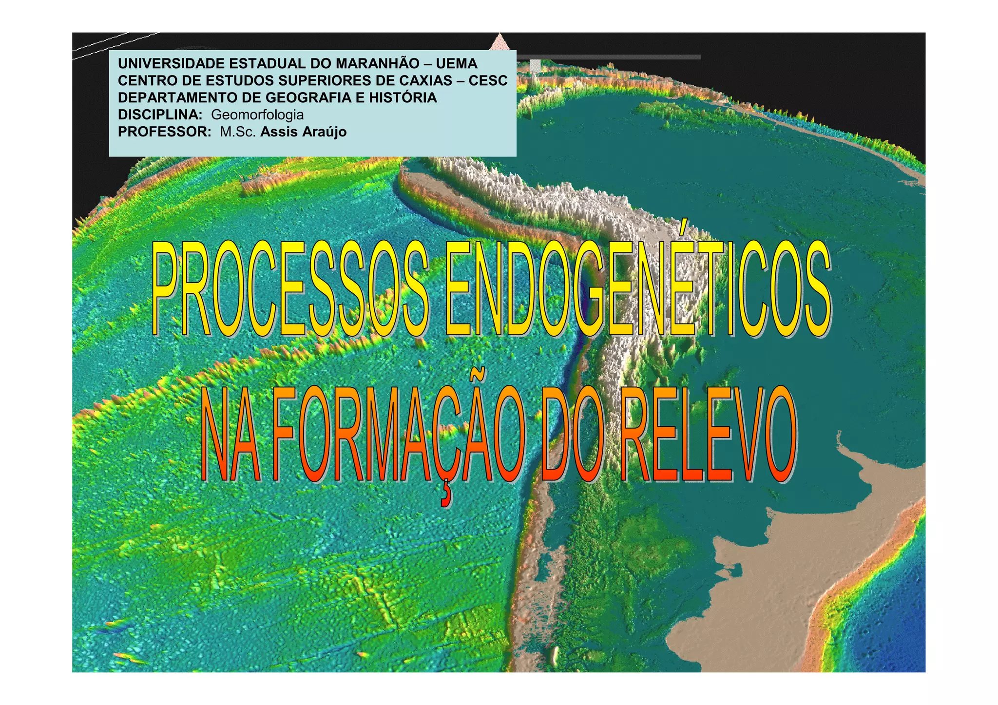 Os processos geodinâmicos internos modelam o relevo terrestre através de fenômenos como o vulcanismo, o plutonismo, a orogênese e a epirogênese. A origem do calor interno da Terra inclui a acreção planetária, a radioatividade e as correntes de convecção no manto, que mobilizam magma para a superfície e impulsionam a tectônica de placas.