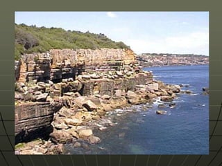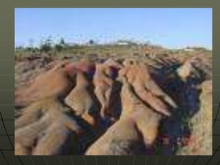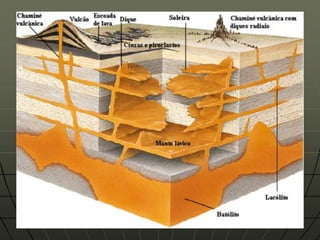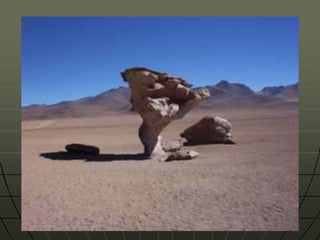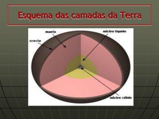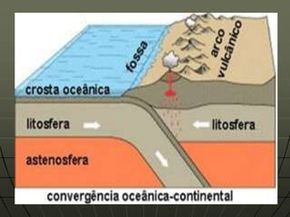 Este documento descreve as forças internas e externas que modificam o relevo da Terra. As forças internas incluem tectonismo, movimentos epirogênicos e orogênicos, dobramentos, falhamentos e vulcanismo, que são causados por processos no núcleo e manto. As forças externas incluem a água, gelo, vento, temperatura e seres vivos, que esculpem a superfície terrestre por meio de erosão. O documento também fornece detalhes sobre como cada força