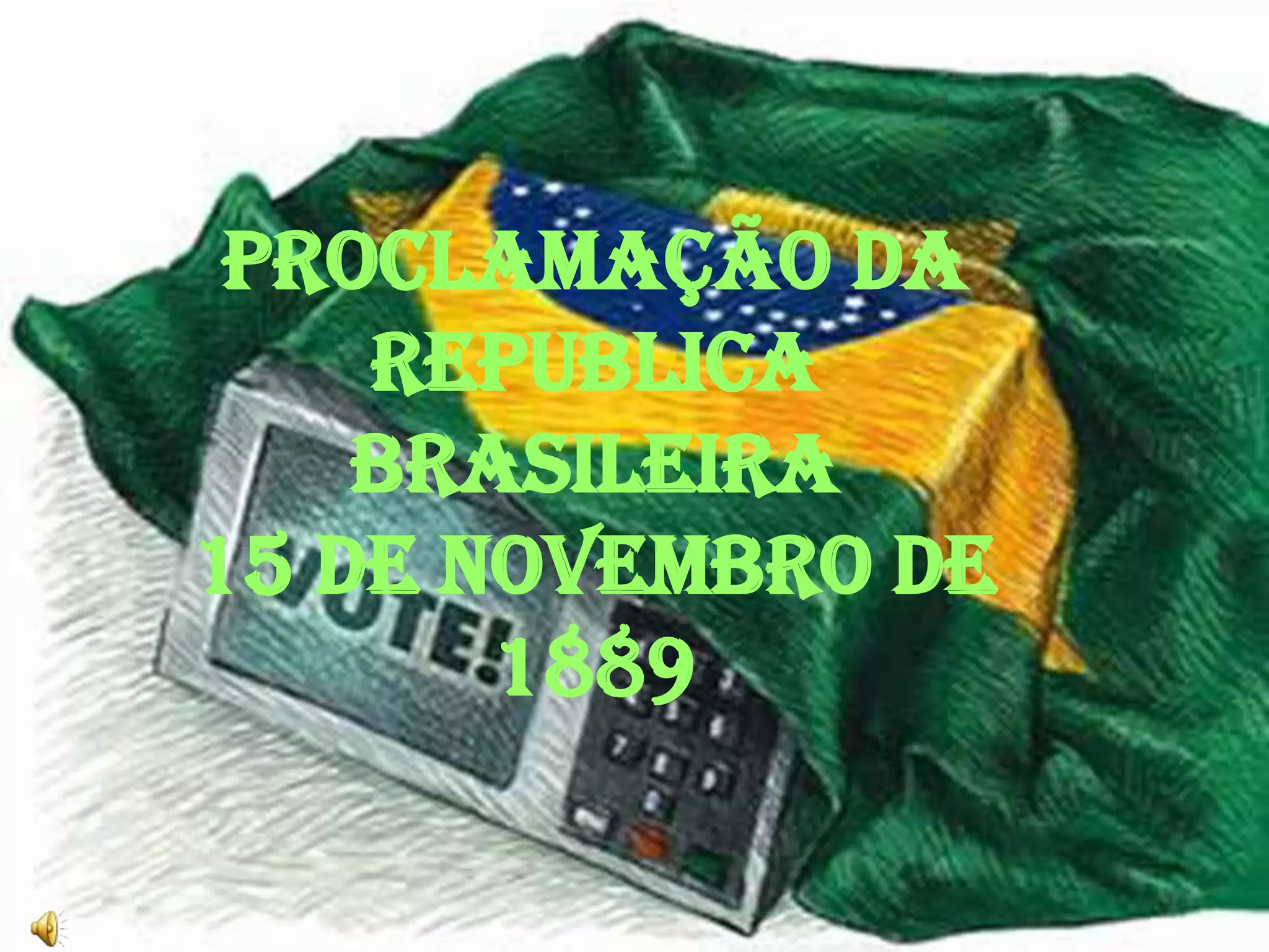 Este documento apresenta o hino da Proclamação da República Brasileira de 15 de novembro de 1889. O hino celebra a proclamação da república e a liberdade do Brasil, convocando os brasileiros a lutarem pela pátria caso necessário para defender a liberdade recém-conquistada.