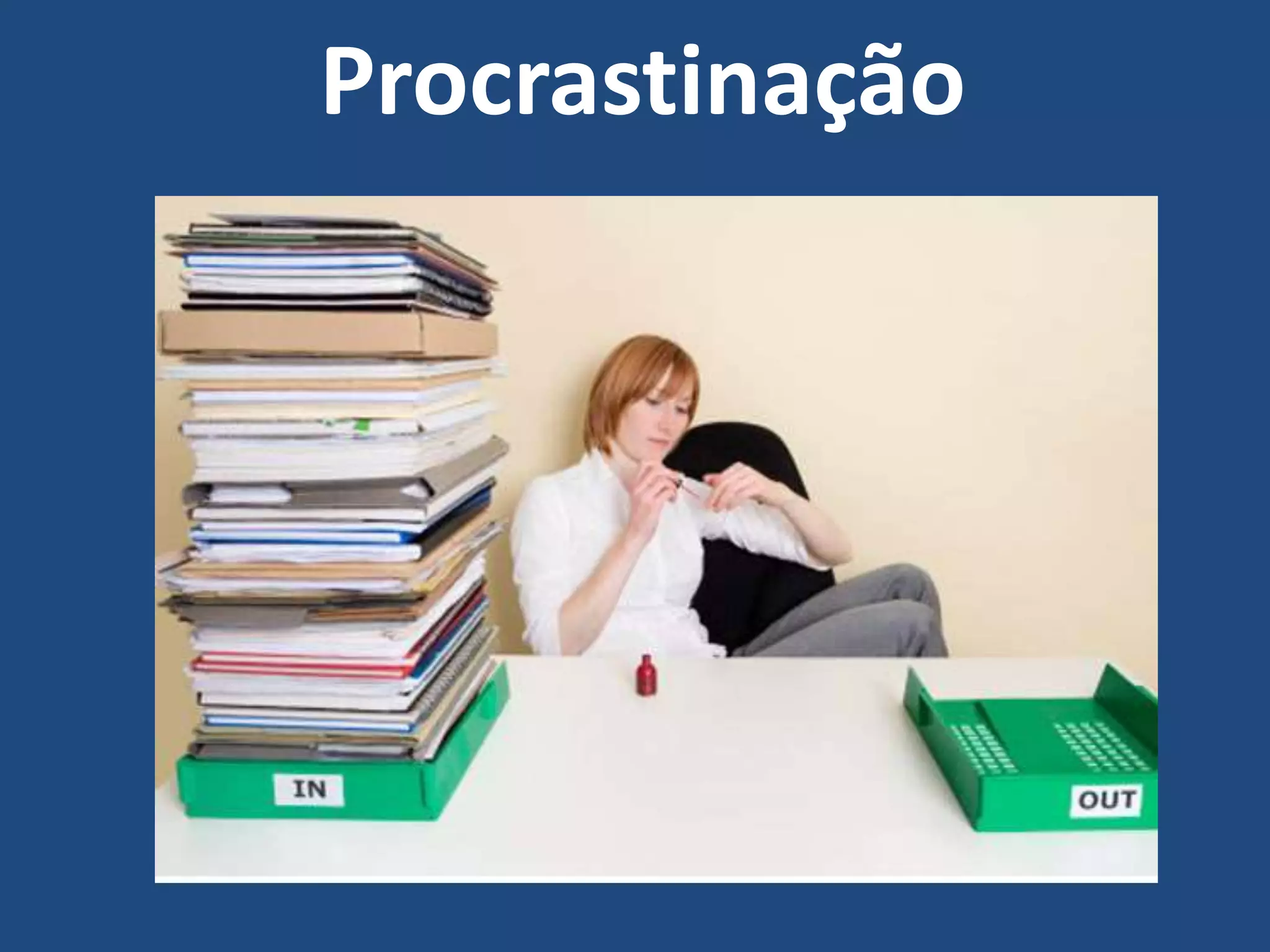 Procrastinação é o ato de adiar tarefas, principalmente por fazer o que gostamos primeiro, medo de errar, trabalhar melhor sob pressão ou falta de prioridades. Isso pode prejudicar objetivos ao adiar atividades importantes. Para evitar, estabeleça prioridades, faça as tarefas mais difíceis primeiro, tenha prazos e aprenda com erros ao invés de temê-los.