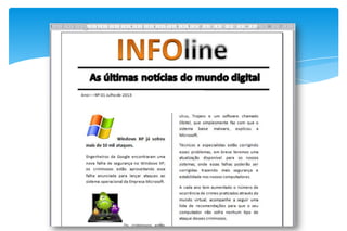 3) São fornecidos exemplos de layout de jornal com várias notícias, além de dicas sobre estilos de texto, cores e uso de colunas.