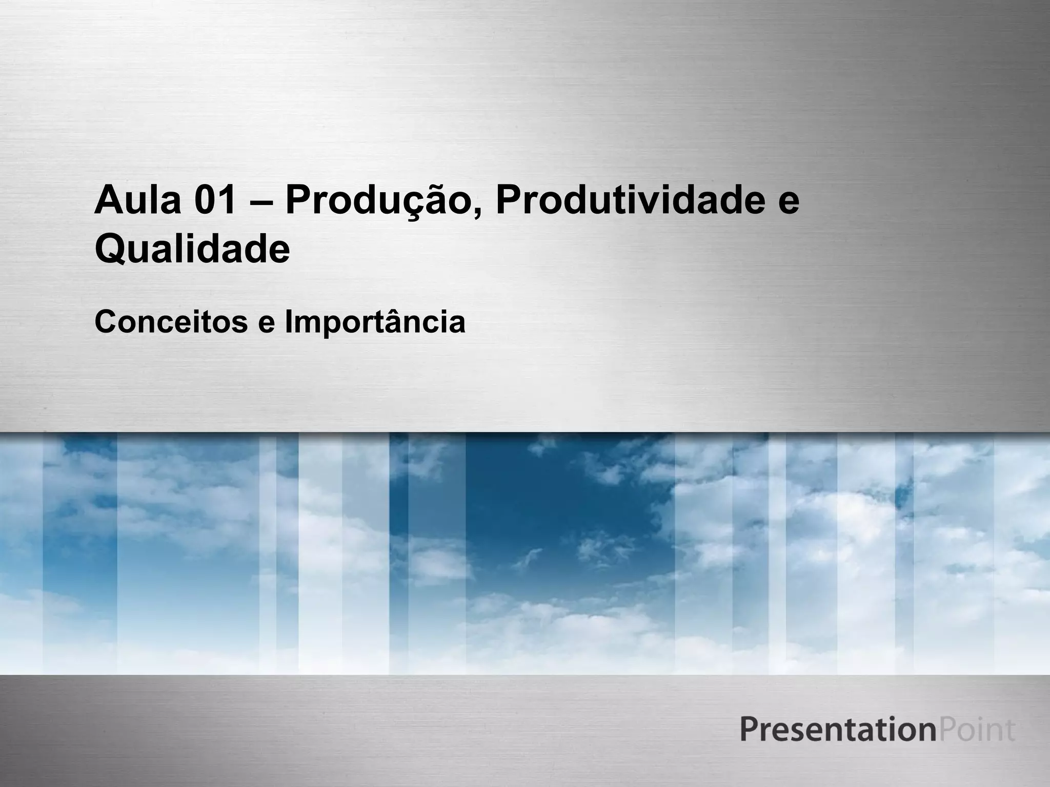 O documento discute conceitos de produção, produtividade e qualidade. Ele define produção como a transformação de insumos em produtos ou serviços por meio de operações e transformações. Produtividade é a relação entre saídas e entradas de um processo. Qualidade se refere à satisfação do cliente e especificações do produto. Ambos produtividade e qualidade são importantes para o sucesso de uma empresa.