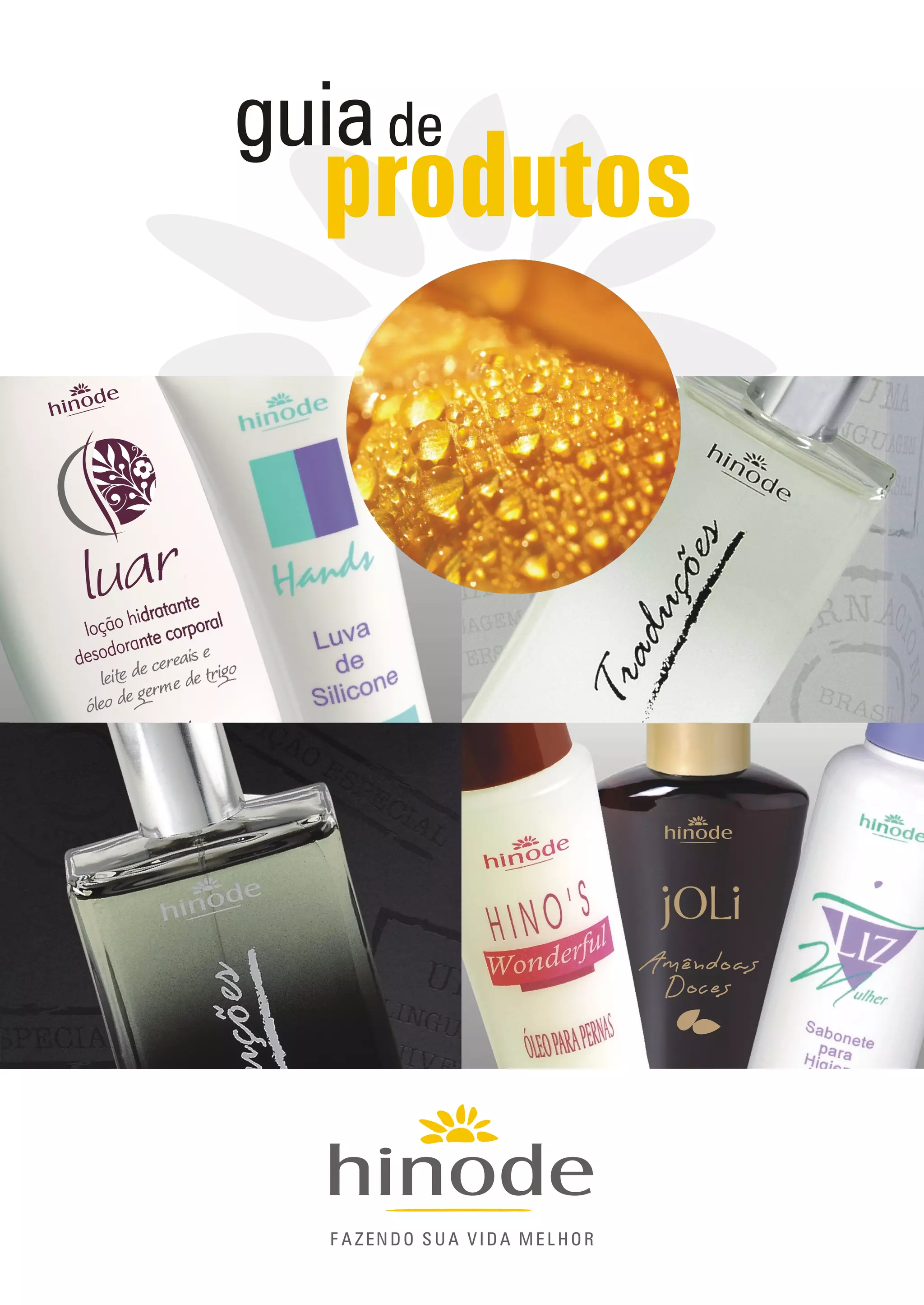 Este documento fornece informações sobre produtos cosméticos da marca Hinode, incluindo sabonetes para higiene íntima, óleos para pernas, luvas de silicone para mãos e cremes faciais e corporais. Resume os benefícios de cada produto e fornece dicas sobre cuidados com a pele e aplicação correta dos produtos.