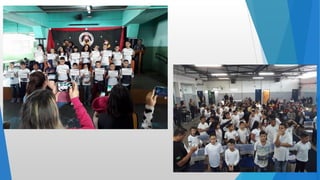O documento discute o Programa de Resistência as Drogas e Violência (PROERD) que tem o objetivo de prevenir o uso de drogas entre crianças e adolescentes por meio de atividades dinâmicas e interativas nas escolas. O PROERD integra família, escola e polícia comunitária e tem obtido resultados positivos como informar estudantes sobre drogas, reforçar orientações dos pais e melhorar o comportamento e autoestima dos alunos.