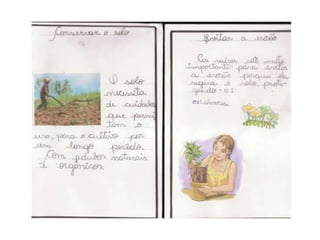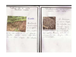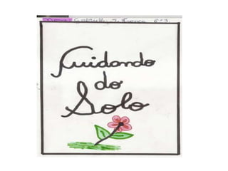 O documento fala sobre um trabalho realizado com alunos do 6o ano sobre cuidados com o solo. O objetivo era ensinar os estudantes sobre a importância de preservar e cuidar do solo para garantir a produção de alimentos.