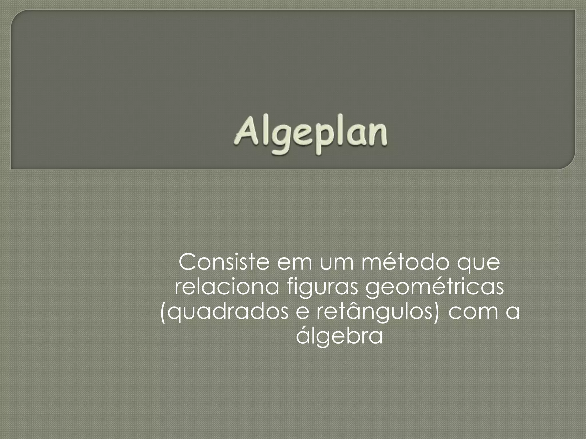 O documento descreve o método Algeplan, que usa figuras geométricas para ensinar álgebra. O método foi usado com 180 estudantes e mostrou-se efetivo para ensinar expressões algébricas, equações de primeiro e segundo grau e fatoração, motivando mais os alunos. O software Winplot também foi usado para explorar gráficos de funções quadráticas.