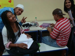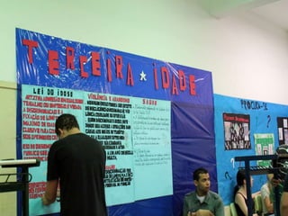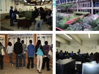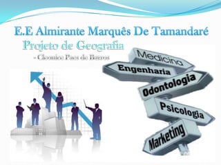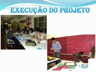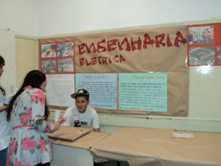 O documento descreve um projeto para ajudar alunos do ensino médio a escolherem suas futuras carreiras. Os alunos são divididos em grupos para pesquisar carreiras que têm afinidade, como engenheiro e advogado. Eles aprendem sobre as disciplinas, faculdades e salários de cada carreira. Apresentam seus achados em uma feira de estandes para sanar dúvidas sobre carreiras profissionais.
