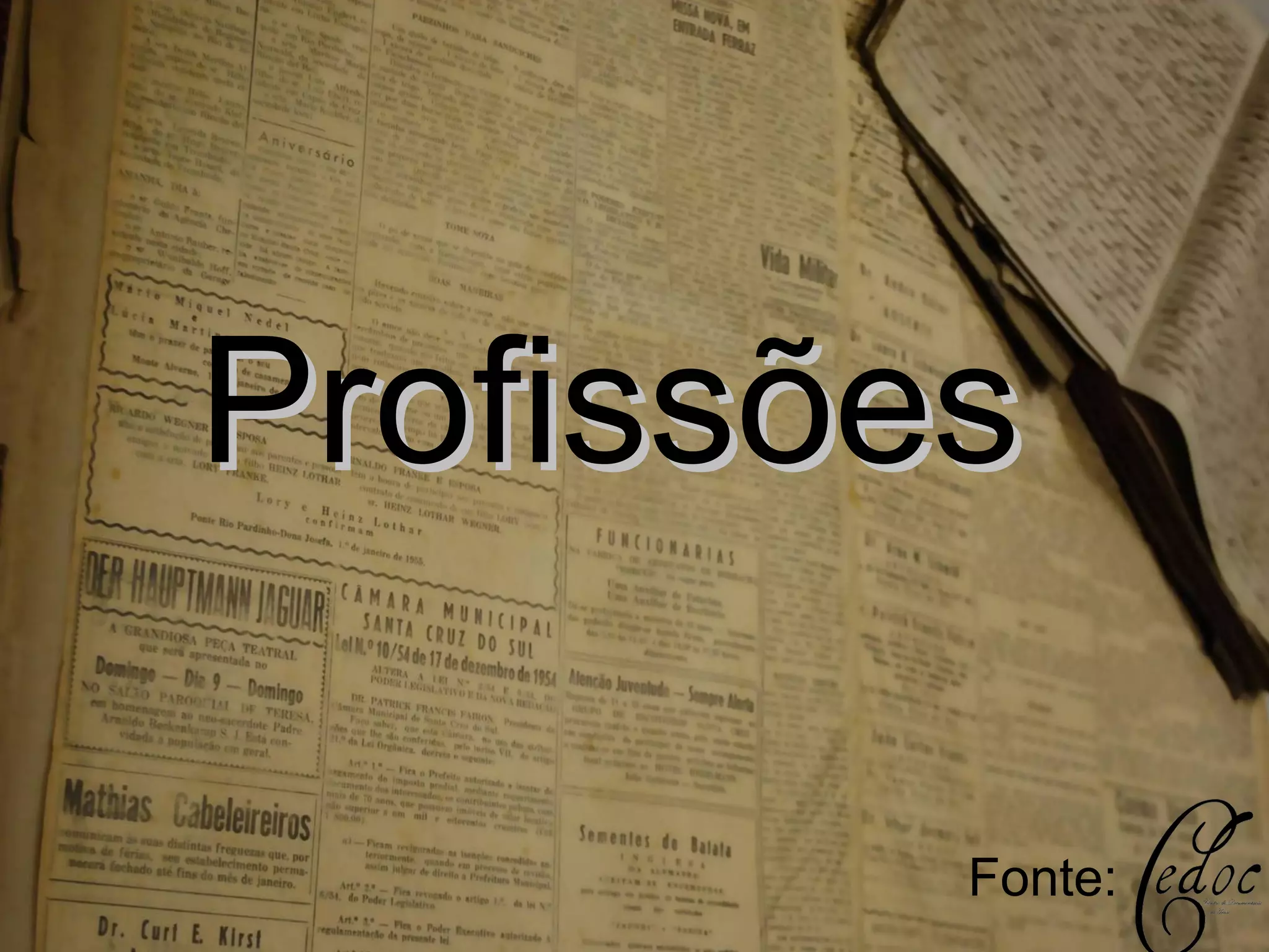 O documento descreve como eram os primeiros meios de transporte coletivo e de carga na cidade, incluindo o primeiro ônibus da cidade em 1919 e carroças usadas para transportar produtos. Também mostra imagens de ofícios como alfaiate e agrimensores e locais como cervejarias e salas cirúrgicas na época.