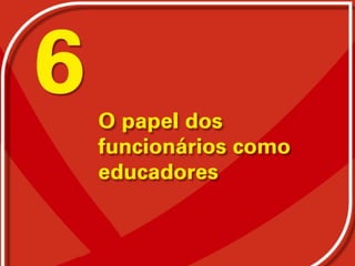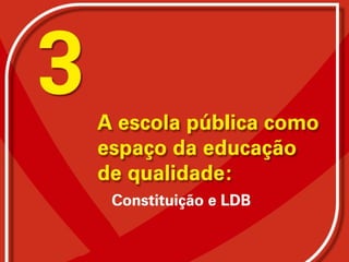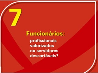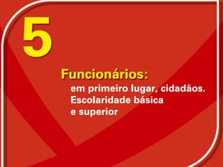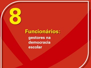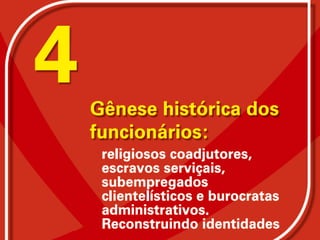 O documento descreve a evolução histórica da educação no Brasil desde o período colonial até a atual Constituição de 1988, destacando o papel dos funcionários escolares. Também discute os desafios atuais da educação pública brasileira como a terceirização e a necessidade de reconstruir as identidades profissionais dos funcionários.
