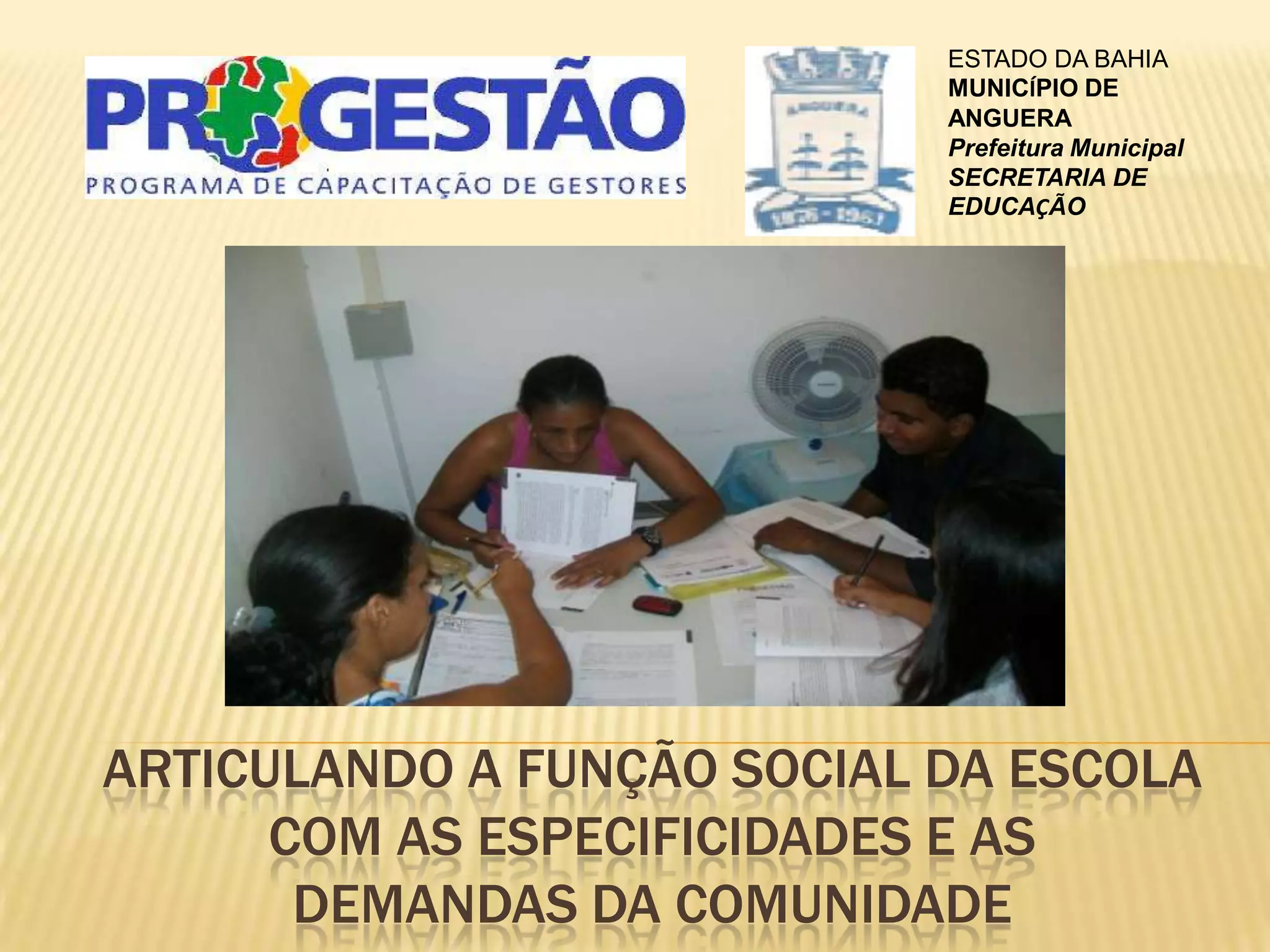 Este documento descreve encontros realizados por uma escola municipal em Anguera, Bahia com pais, alunos e profissionais. Os objetivos eram aproximar a escola da comunidade, discutir assuntos como indisciplina, envolvimento dos pais e alimentação saudável. Foram abordados tópicos como frequência escolar e conservação de materiais. No geral, os encontros tiveram boa participação e sensibilizaram sobre a importância da educação e alimentação para as crianças.