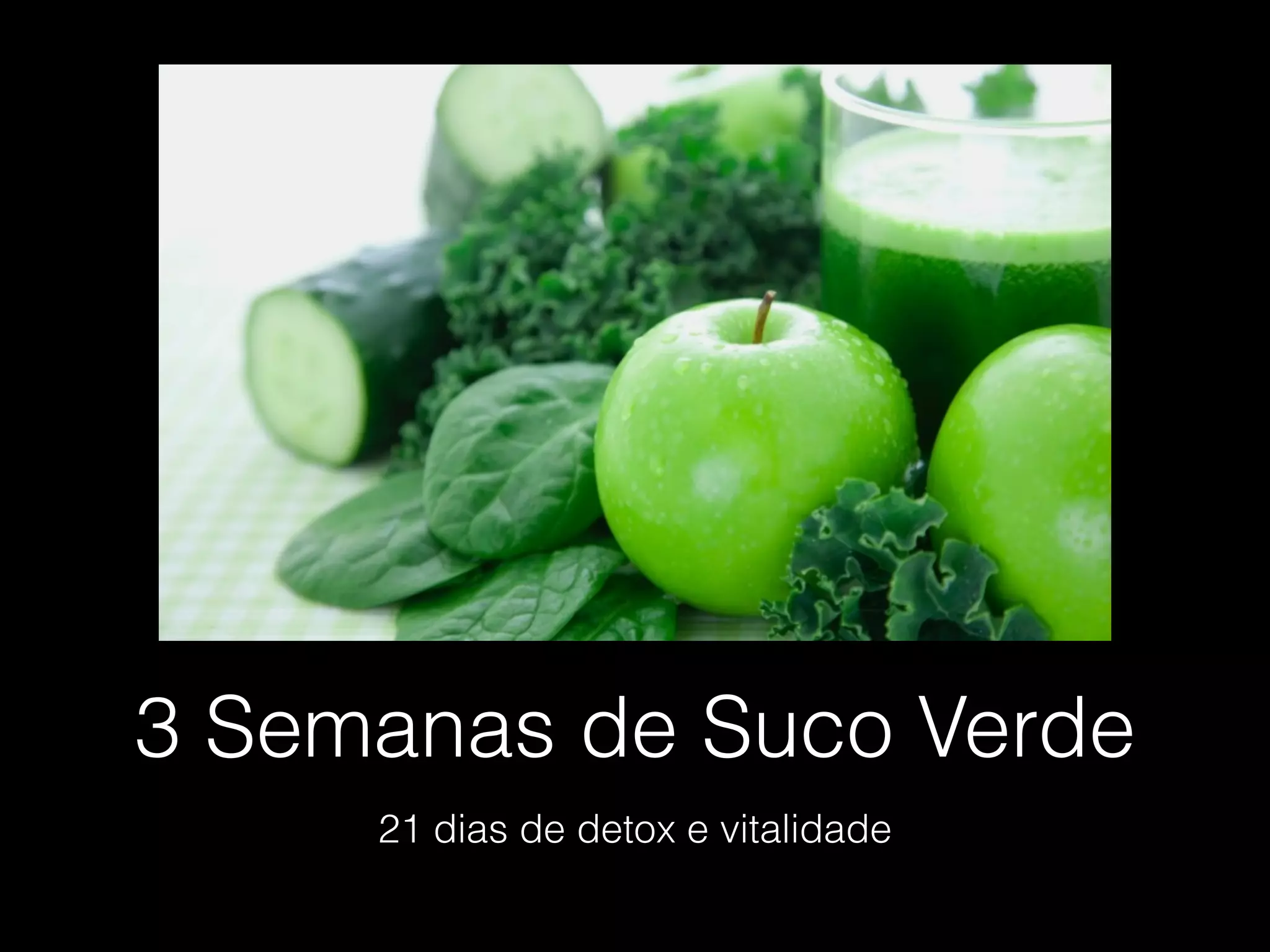 Este documento descreve um programa de 21 dias baseado em sucos verdes para desintoxicação e revitalização. O programa fornecerá uma análise do biótipo da pessoa e uma rotina personalizada de sucos, além de orientações alimentares. O idealizador Paulo Yamaçake é formado em estudos da mente e corpo e tem experiência trabalhando com saúde e bem-estar em diversos países. Clientes anteriores relataram resultados positivos e o programa oferece devolução do dinheiro caso não haja resultados.