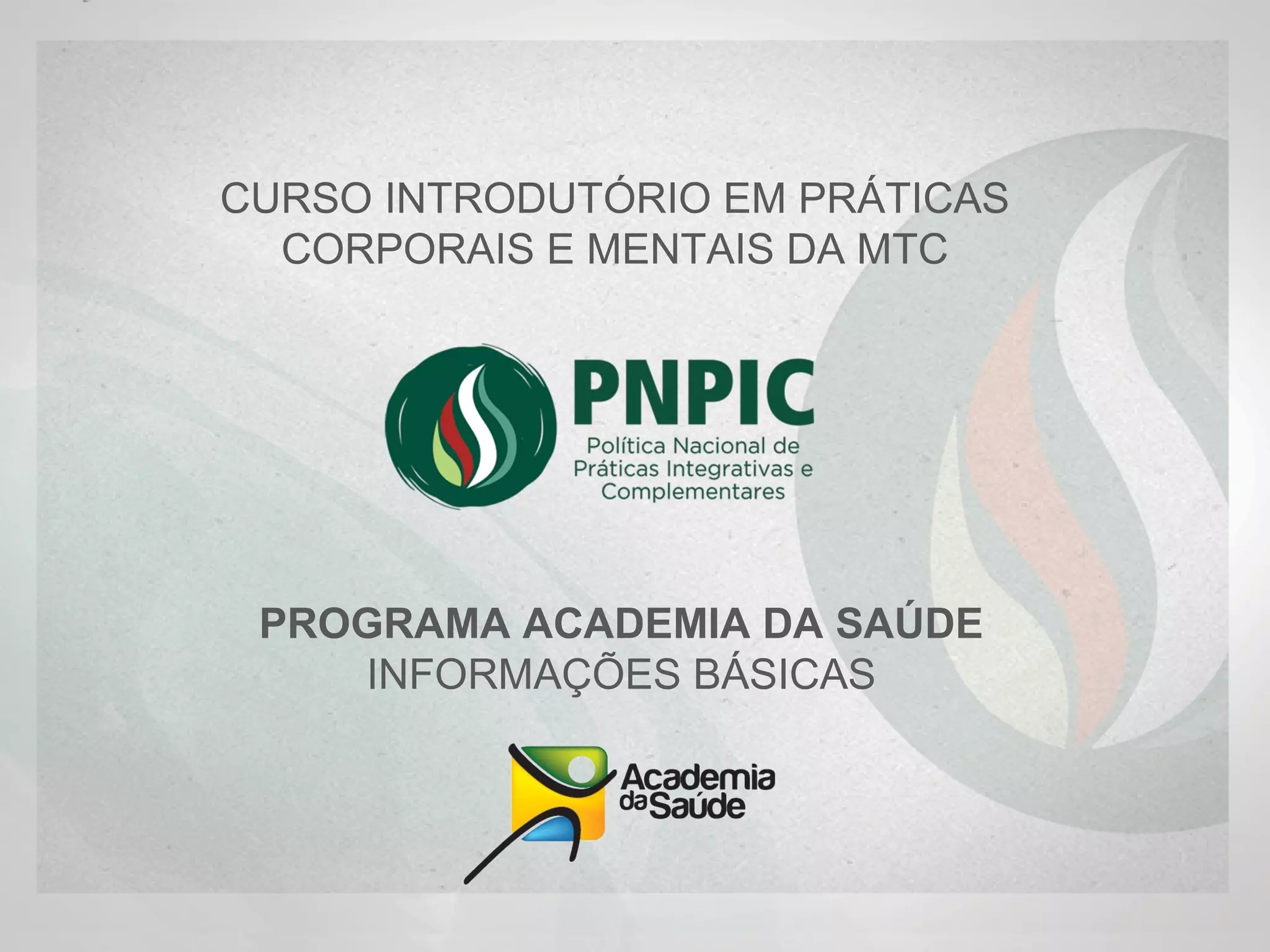 Este documento fornece informações sobre o Programa Academia da Saúde do Ministério da Saúde brasileiro, incluindo seu histórico, objetivos, estrutura, financiamento, monitoramento e referências. O programa tem como objetivo promover a saúde da população por meio de polos com infraestrutura e profissionais qualificados para atividades físicas e de bem-estar.