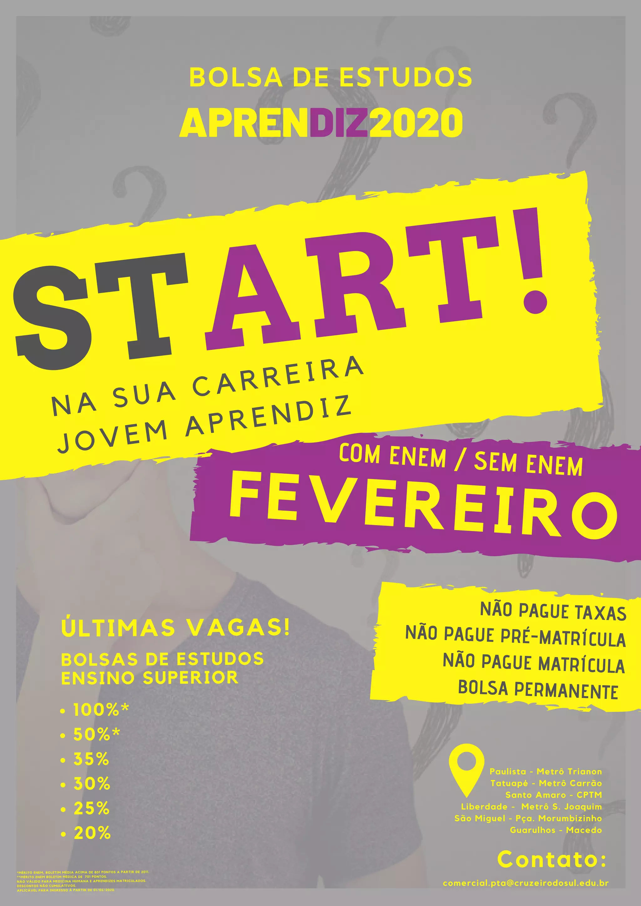 O documento anuncia a disponibilidade de bolsas de estudo de 100% a 20% para ensino superior em vários locais de São Paulo. Os interessados não precisam pagar taxas ou pré-matrículas e as bolsas são permanentes, sendo aplicáveis a estudantes com notas específicas do ENEM. Informações adicionais podem ser obtidas através do contato fornecido.