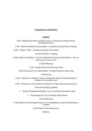 O congresso realizado em Lisboa nos dias 29 e 30 de outubro tem como objetivo destacar a importância do riso para a saúde física, mental e emocional. Diversos especialistas na área da saúde e do riso participarão com palestras e workshops, abordando como a prática do riso pode melhorar a qualidade de vida. O evento inclui meditações, sessões de risoterapia e palestras sobre o tema, promovendo uma experiência de bem-estar coletivo.