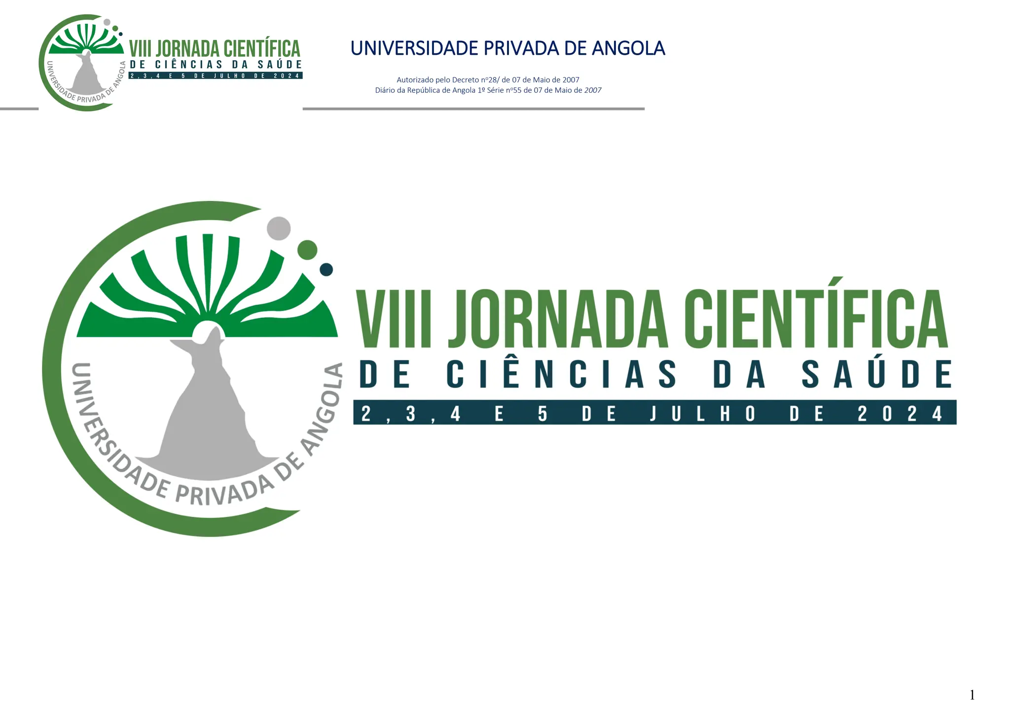 A VIII Jornada Científica da Faculdade de Ciências da Saúde da Universidade Privada de Angola ocorrerá em 04 de julho de 2024, com o lema 'Saúde e Ciência para um Futuro Sustentável'. O evento contará com conferências e mesas redondas sobre temas como sustentabilidade em saúde, humanização dos cuidados, e avanços na fisioterapia, reunindo especialistas e moderadores de diversas áreas da saúde. O evento visa promover a troca de conhecimento e a discussão sobre desafios atuais no setor de saúde em Angola.