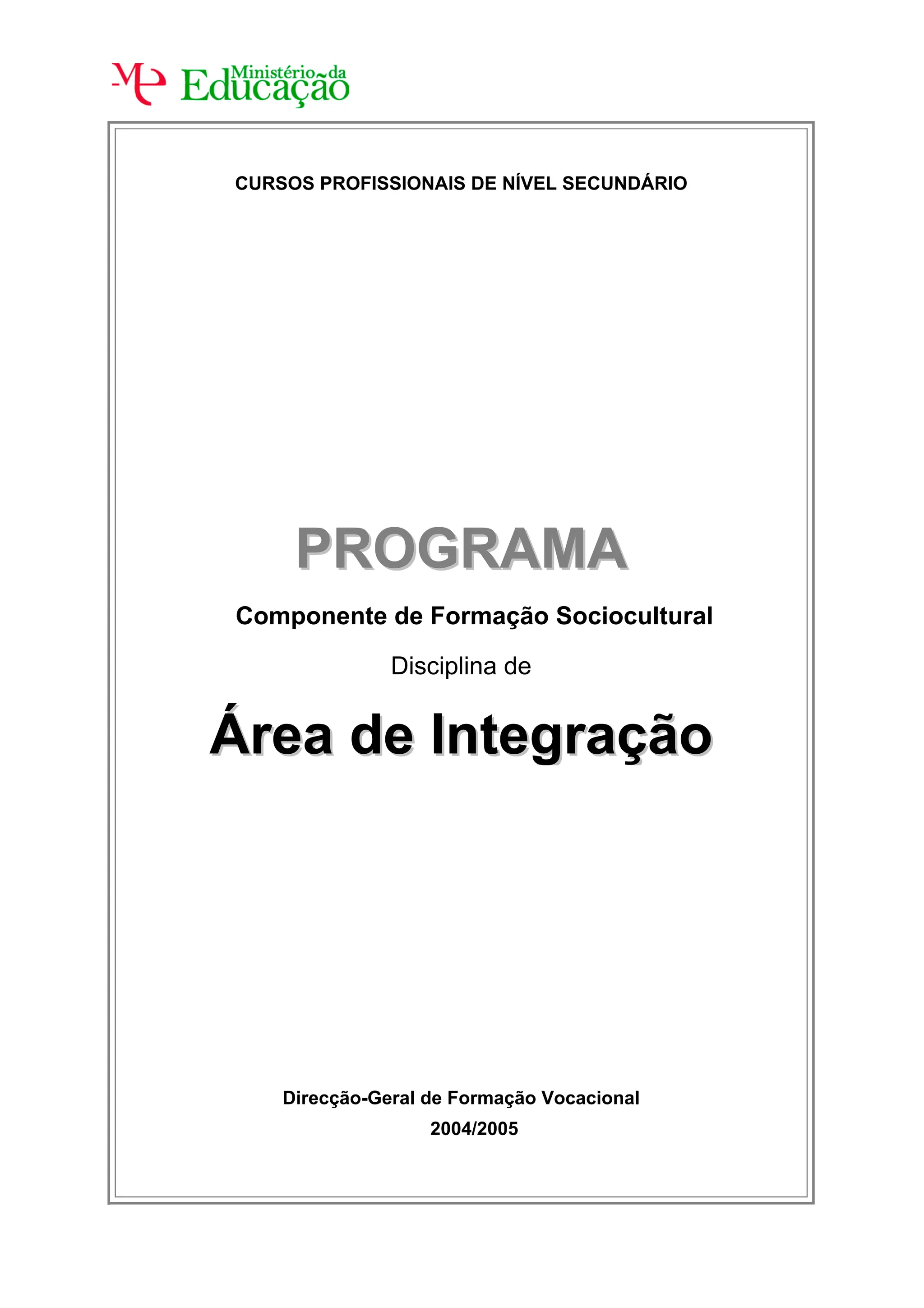 O documento apresenta o programa de formação sociocultural para cursos profissionais de nível secundário, destacando a importância da transversalidade entre disciplinas e a aquisição de competências para a inserção no mercado de trabalho. O programa é estruturado em três áreas, cada uma composta por unidades temáticas e temas-problema, e busca desenvolver habilidades como iniciativa, responsabilidade e criatividade. As orientações metodológicas enfatizam a seleção de conteúdos relevantes com base no perfil dos alunos e a utilização de abordagens ativas de aprendizagem.