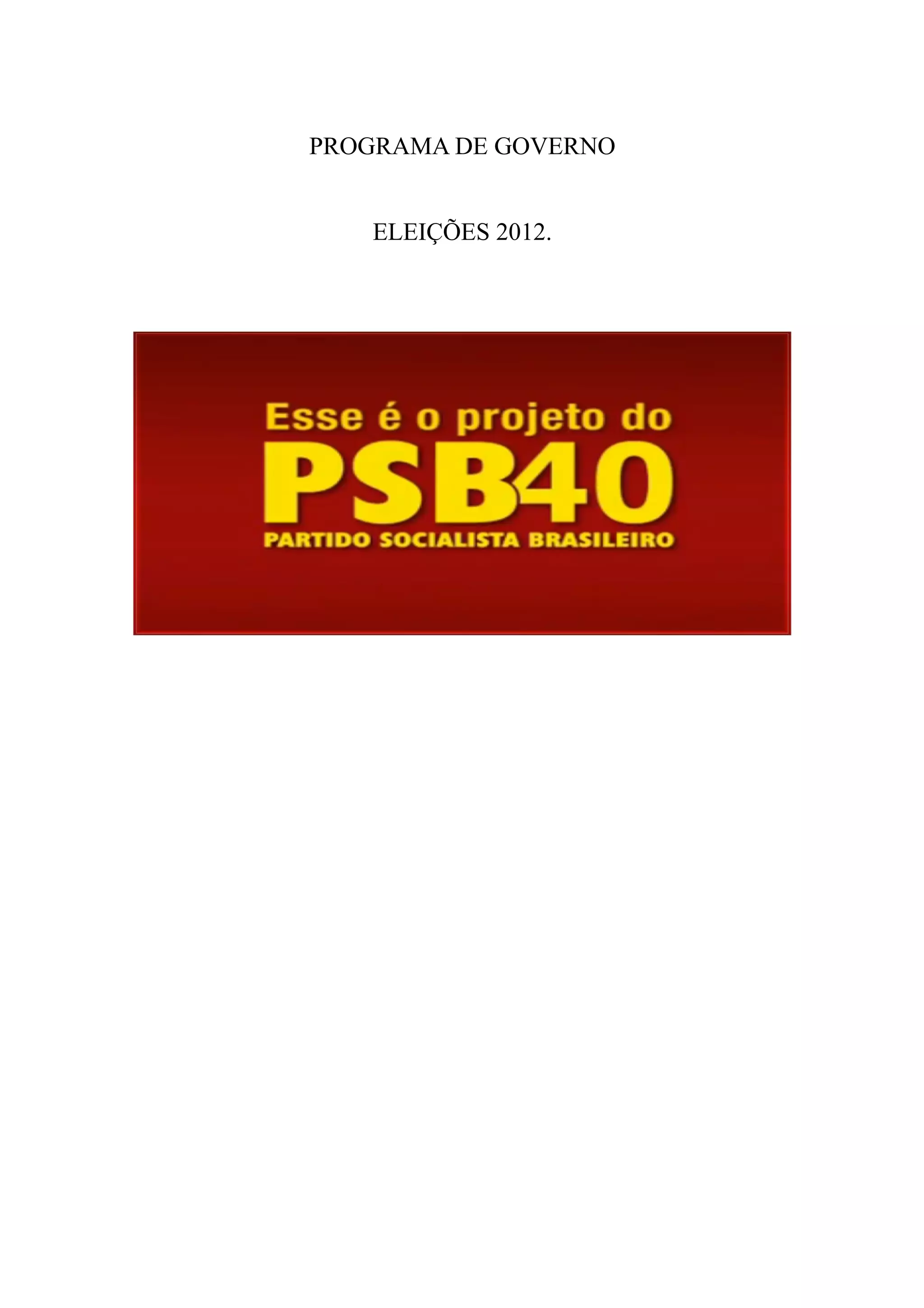 Este documento apresenta o programa de governo de uma coligação política para as eleições municipais de 2012 em Camaragibe, Pernambuco. O programa propõe (1) uma administração pública eficiente e transparente, (2) melhorias na educação, saúde e assistência social, e (3) investimentos em infraestrutura, mobilidade, cultura e meio ambiente para promover o desenvolvimento econômico do município.