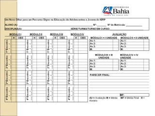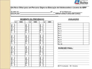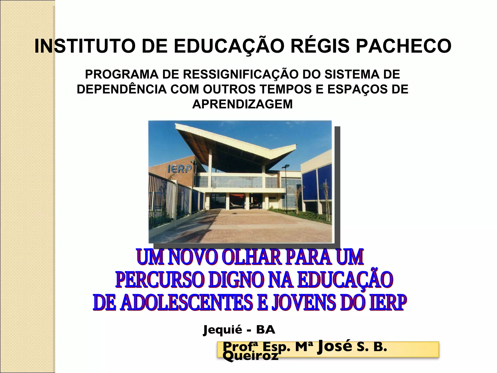 O documento apresenta o programa de ressignificação do sistema de dependência na educação de adolescentes e jovens do Instituto de Educação Régis Pacheco em Jequié-BA. O programa visa enfrentar a defasagem idade-série, promovendo agrupamentos interdisciplinares e metodologias inovadoras para reduzir a reprovação e a evasão escolar. Os resultados refletem uma melhora na assiduidade, comportamento e desempenho dos alunos envolvidos no programa.