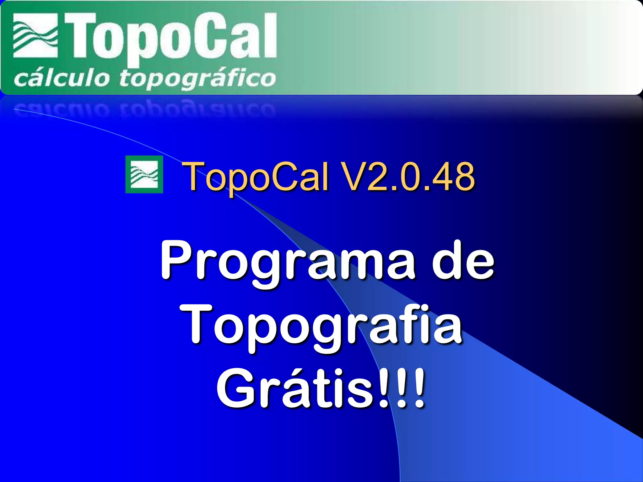 Topocal v2.0.48 é um programa gratuito de topografia que lê e escreve arquivos em formato DXF, permitindo a edição de tabelas em uma interface semelhante a planilhas. O software oferece recursos como visualização em 2D e 3D, geração de pontos aleatórios, e criação de MDTs e curvas de nível, além de facilitar a triangulação de dados topográficos. É projetado para ser fácil de usar, com diversas opções de manipulação e visualização de entidades de maneira eficiente.