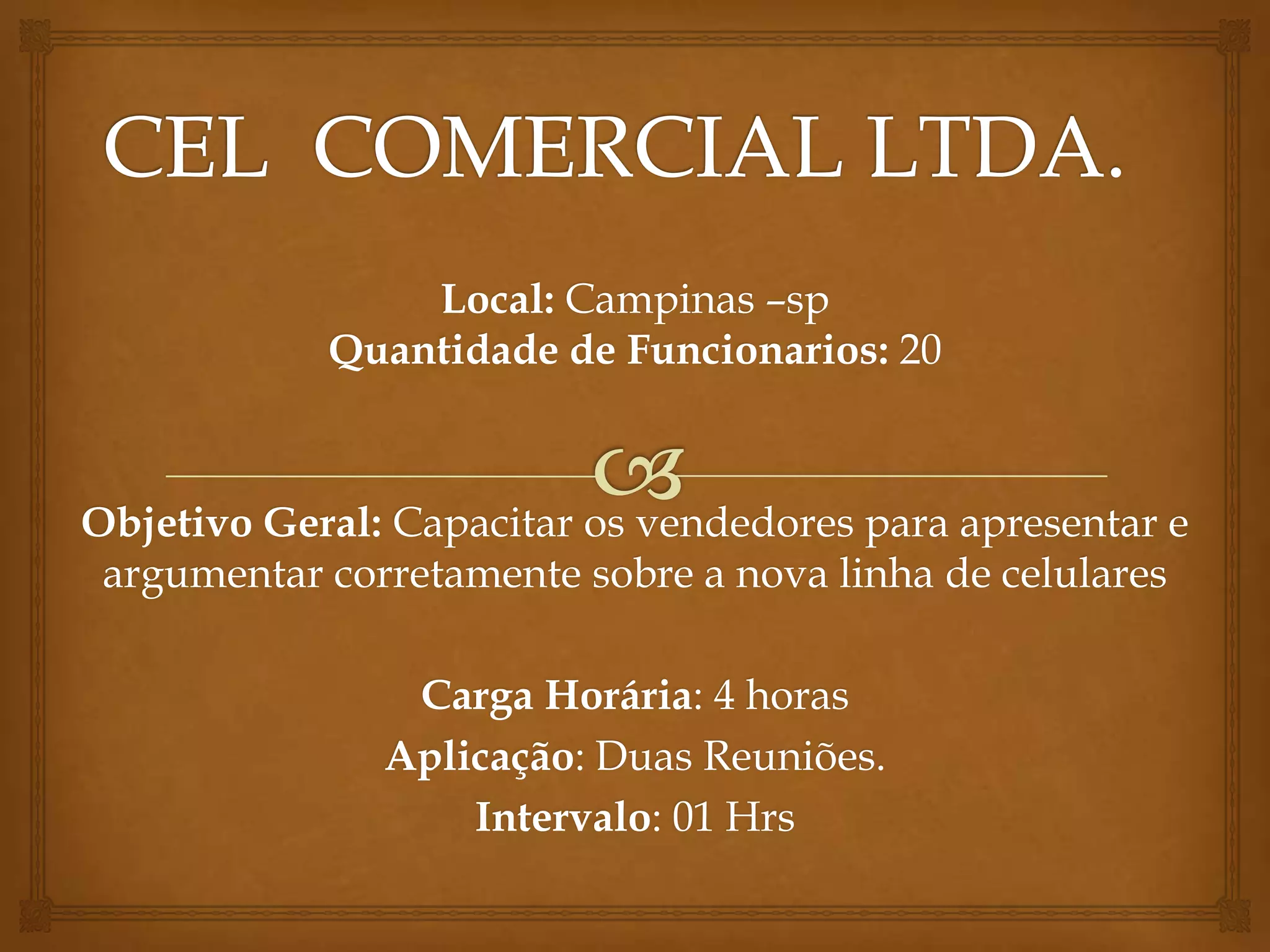1) O documento descreve um treinamento para capacitar vendedores sobre uma nova linha de celulares.