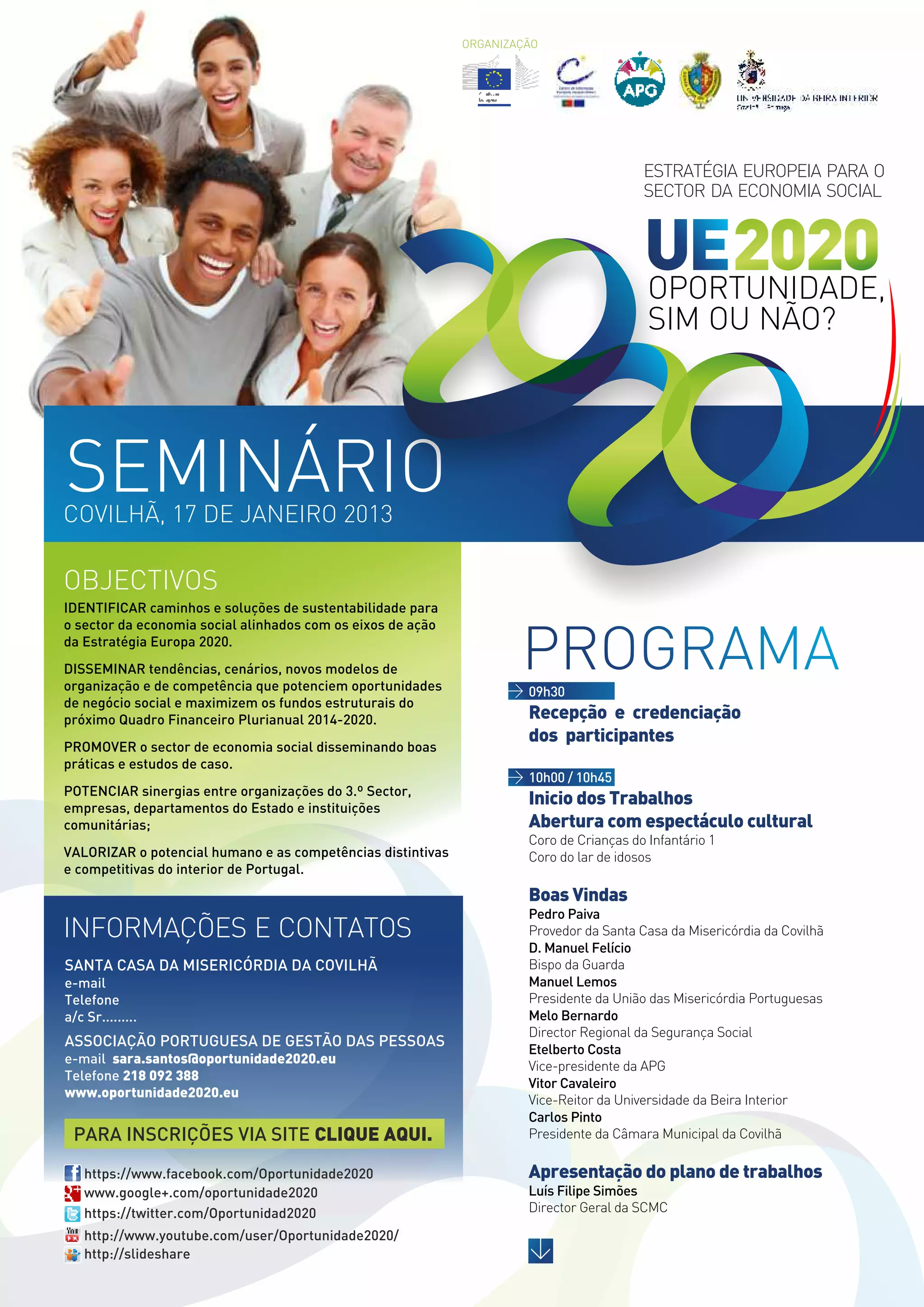 Este documento descreve um seminário sobre a Estratégia Europeia para o Setor da Economia Social. O seminário irá identificar caminhos de sustentabilidade para o setor da economia social alinhados com a Estratégia Europa 2020 e disseminar tendências e novos modelos que potenciem oportunidades de negócio social. O evento também pretende promover o setor da economia social através de boas práticas e estudos de caso.