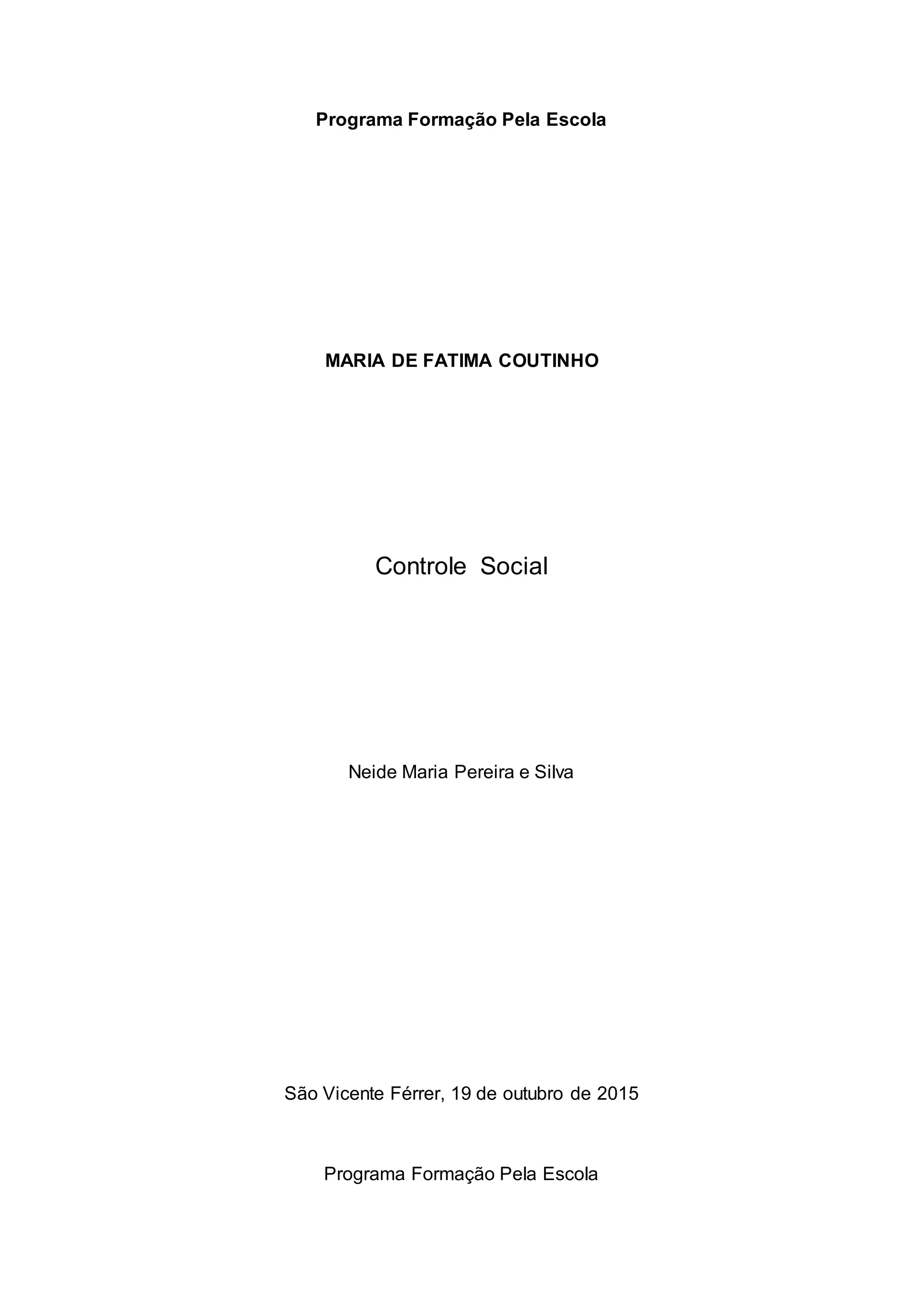Este documento discute o Controle Social no Brasil e sua importância para a participação da sociedade civil no planejamento e avaliação de políticas públicas. Ele também analisa o papel do livro didático na educação e propõe uma solução para promover a responsabilidade dos pais com os livros escolares dos filhos por meio de um termo de compromisso assinado no início do ano letivo.