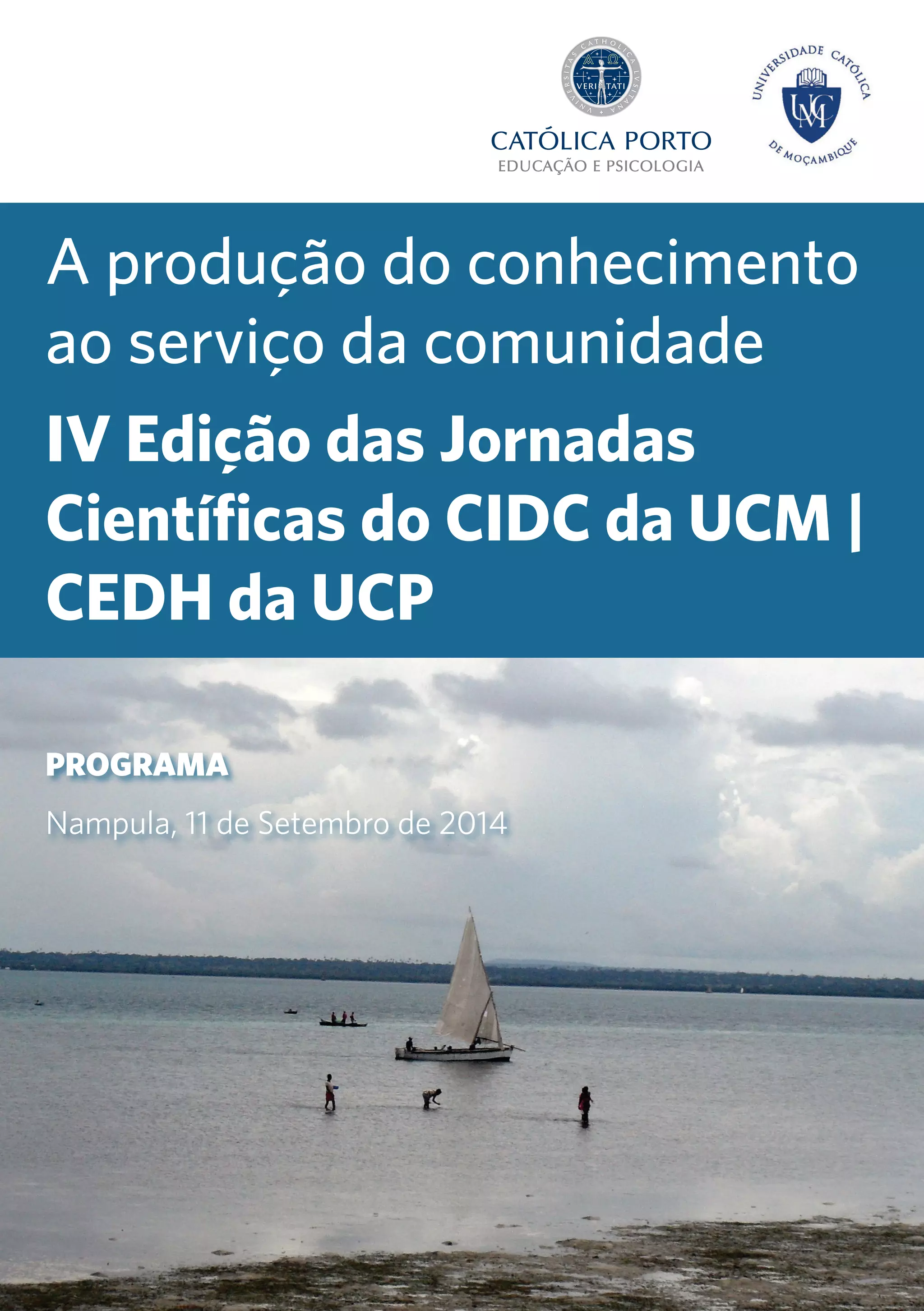 1) O documento descreve o programa das IV Jornadas Científicas do Centro de Investigação e Desenvolvimento Comunitário da Universidade Católica de Moçambique e do Centro de Estudos de Desenvolvimento Humano da Universidade Católica de Portugal.