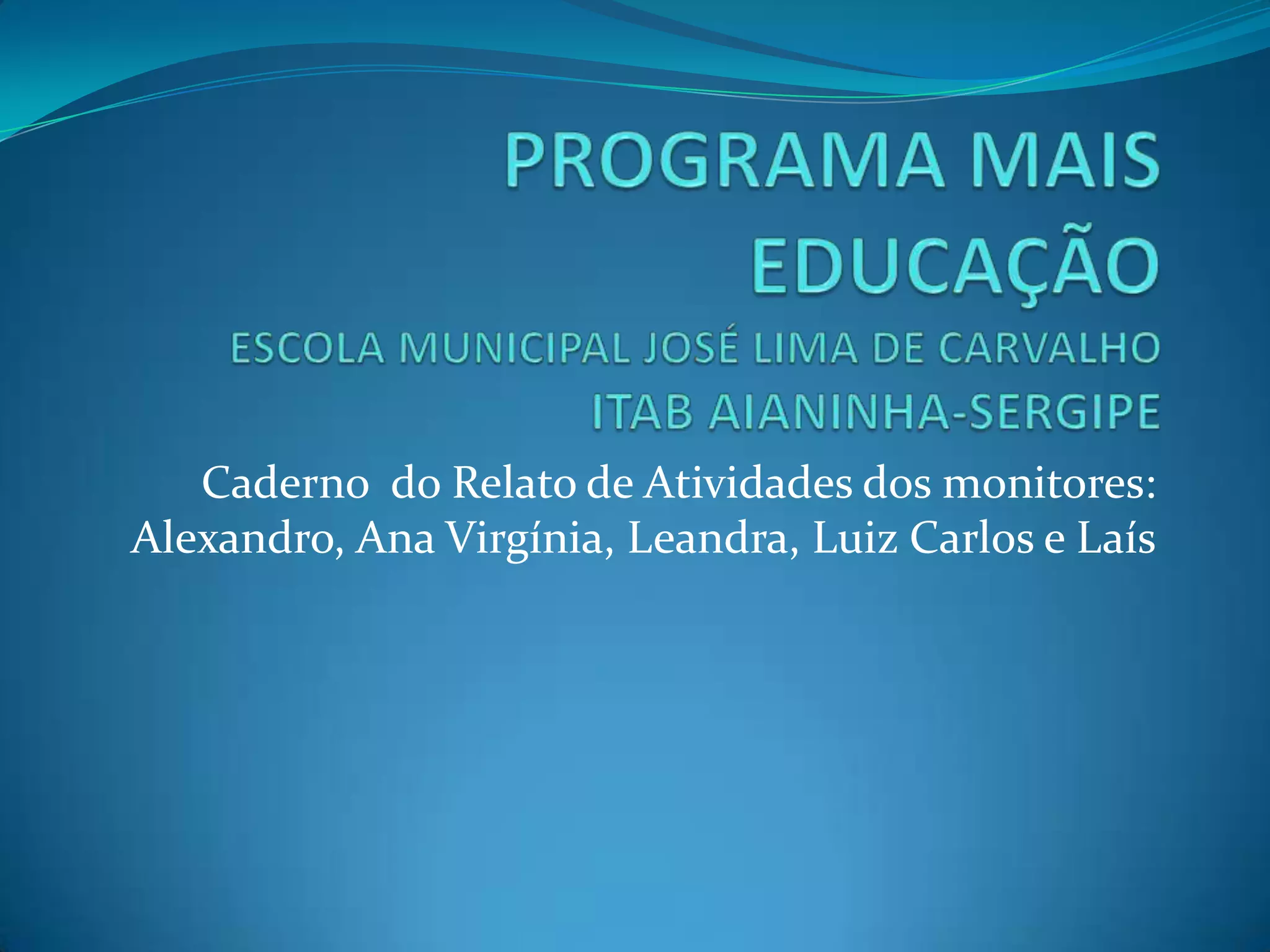 O documento relata as atividades desenvolvidas por monitores do Programa Mais Educação em diversas áreas como atletismo, xadrez, leitura, histórias em quadrinhos, dança e teatro. Também descreve reuniões realizadas entre a equipe de monitores e professores para planejamento e com pais de alunos.